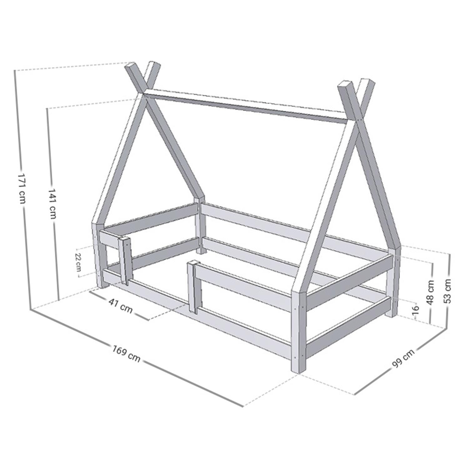 | Libellé | Lit Tipi enfant avec barrière bois massif blanc 90 x 160 cm |