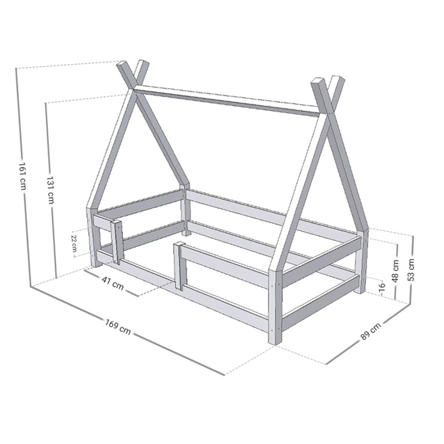 | Libellé | Lit Tipi enfant avec barrière bois massif gris 80 x 160 cm |
