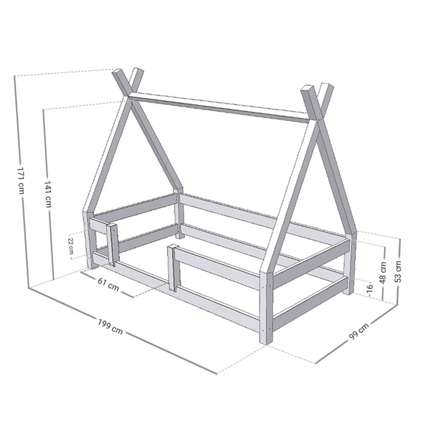 | Libellé | Lit Tipi enfant avec barrière bois massif gris 90 x 190 cm |