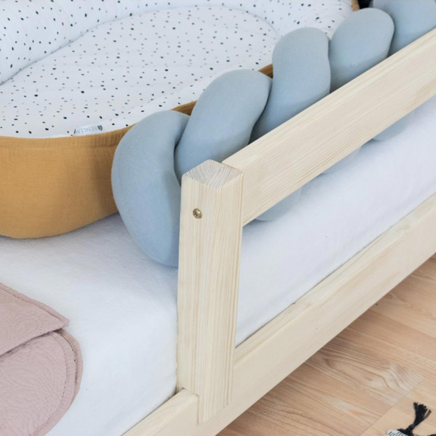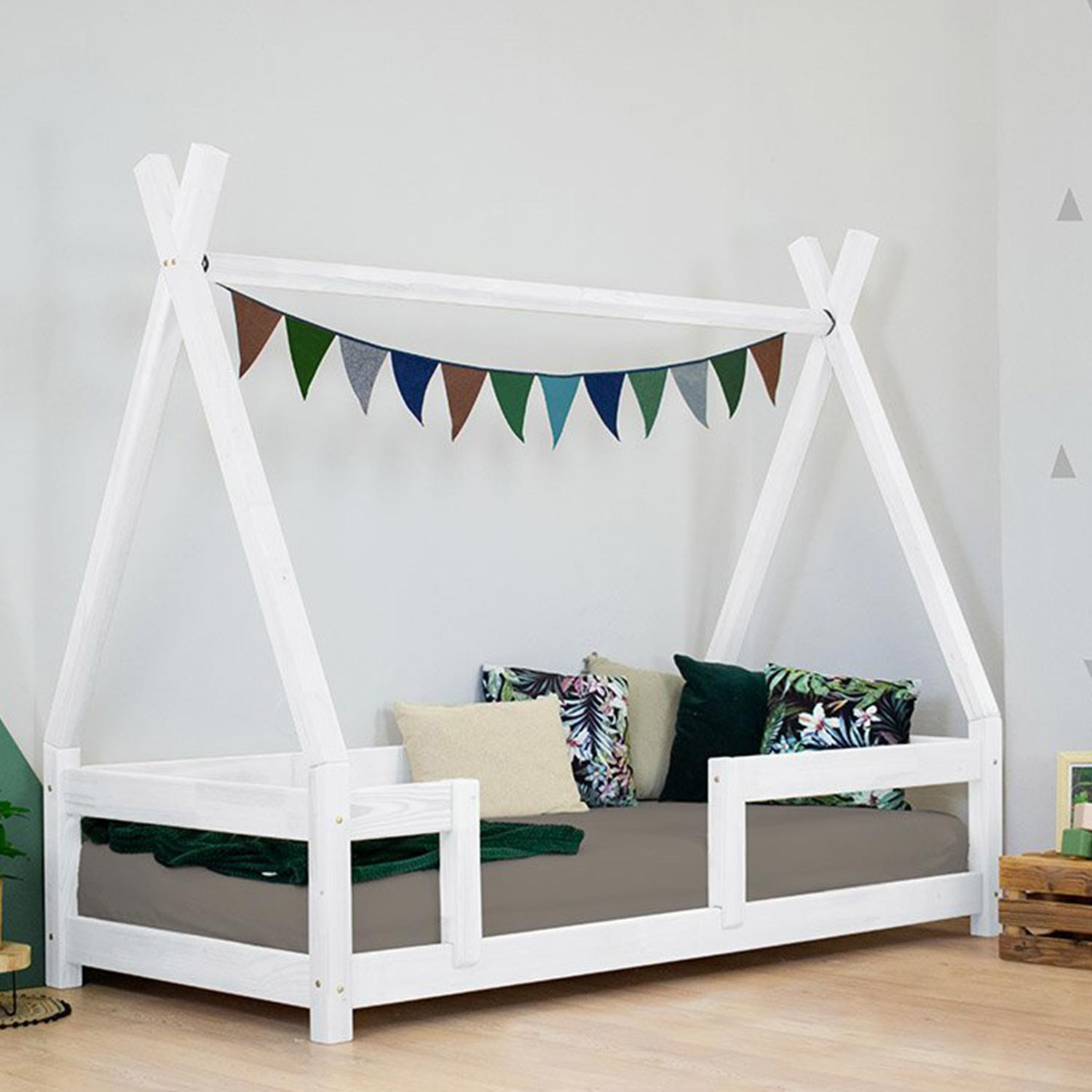 Le lit tipi NAKANA répond à la philosophie Montessori qui consiste à donner à son enfant les outils nécessaires pour qu'il gagne en autonomie en toute sécurité. Fabriqué à la main en Europe, ce lit est à 6 cm de hauteur du sol pour que votre enfant puisse aller et venir dans son lit facilement et permettre à l'air de circuler. Une barrière de sécurité est incluse, barrière amovible que vous pouvez accrocher sur le côté souhaité selon la configuration de la chambre. Le sommier du lit vous est offert avec la structure du lit. Le sommier du lit vous est offert avec la structure du lit. Le lit a une capacité de charge de 150 kg, idéal pour pouvoir lire l'histoire du soir sous le toit du tipi. Existe en 4 coloris et 10 dimensions pour s'adapter à l'âge de votre enfant. Un matelas entre 17 et 23 cm d'épaisseur (90 x 190 cm) est recommandé. Le matelas n'est pas fourni. Vous pouvez compléter votre achat avec un matelas ou un tiroir de lit de la marque Benlemi. Benlemi est une entreprise familiale spécialisée dans le moblier en bois et notamment l'équipement des chambres d'enfant. Cette entreprise européenne dessine et fabrique dans sa propre usine de fabrication les produits proposés. Le design des lits et accessoires est pensé dans une philosophie Montessori. Le vernissage est fait à la main avec des peintures 100% naturelles et anti-allergiques. Le bois utilisé est tracé et rigoureusement sélectionné et la chaîne de fabrication est labellisée PEFC. Produit à monter soi-même. Un manuel de montage est disponible. Garanti 5 ans. Dimensions totales du lit : 156 x 99 x 199 cm (hauteur x largeur x longueur)