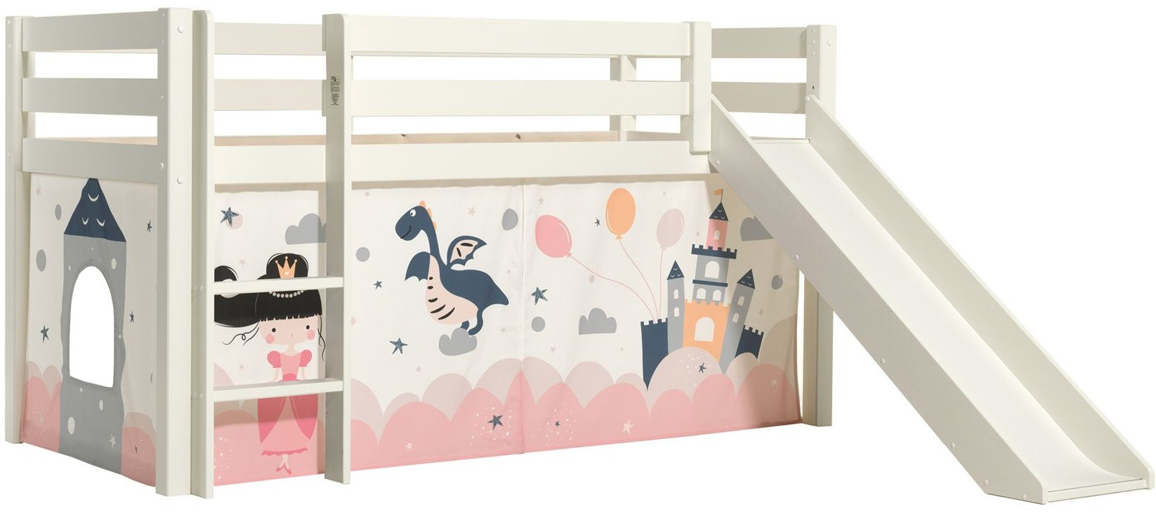 | Libellé | Lit toboggan 90x200 avec tente château pin massif blanc Pino |