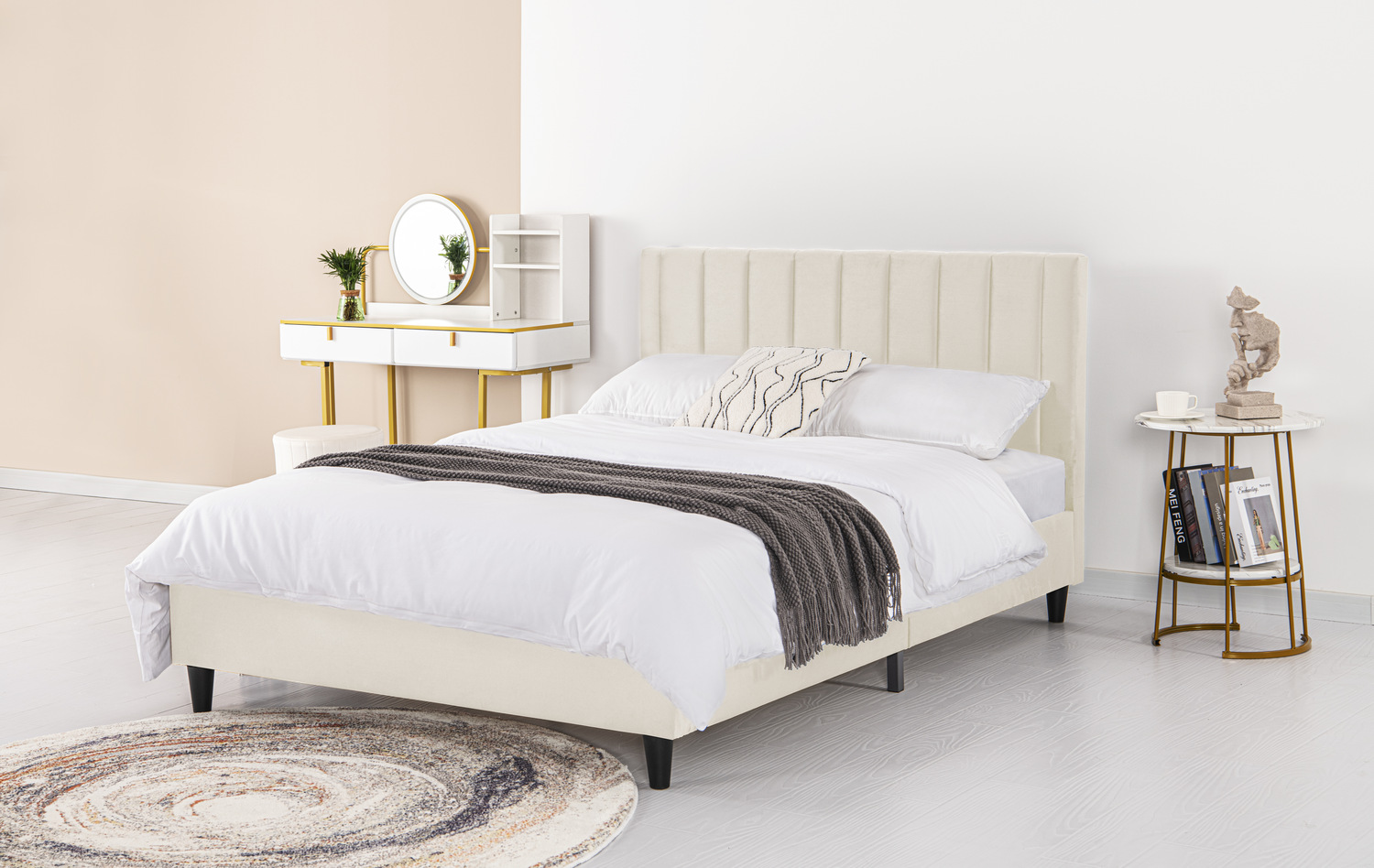 Lit 160x200 en velours beige