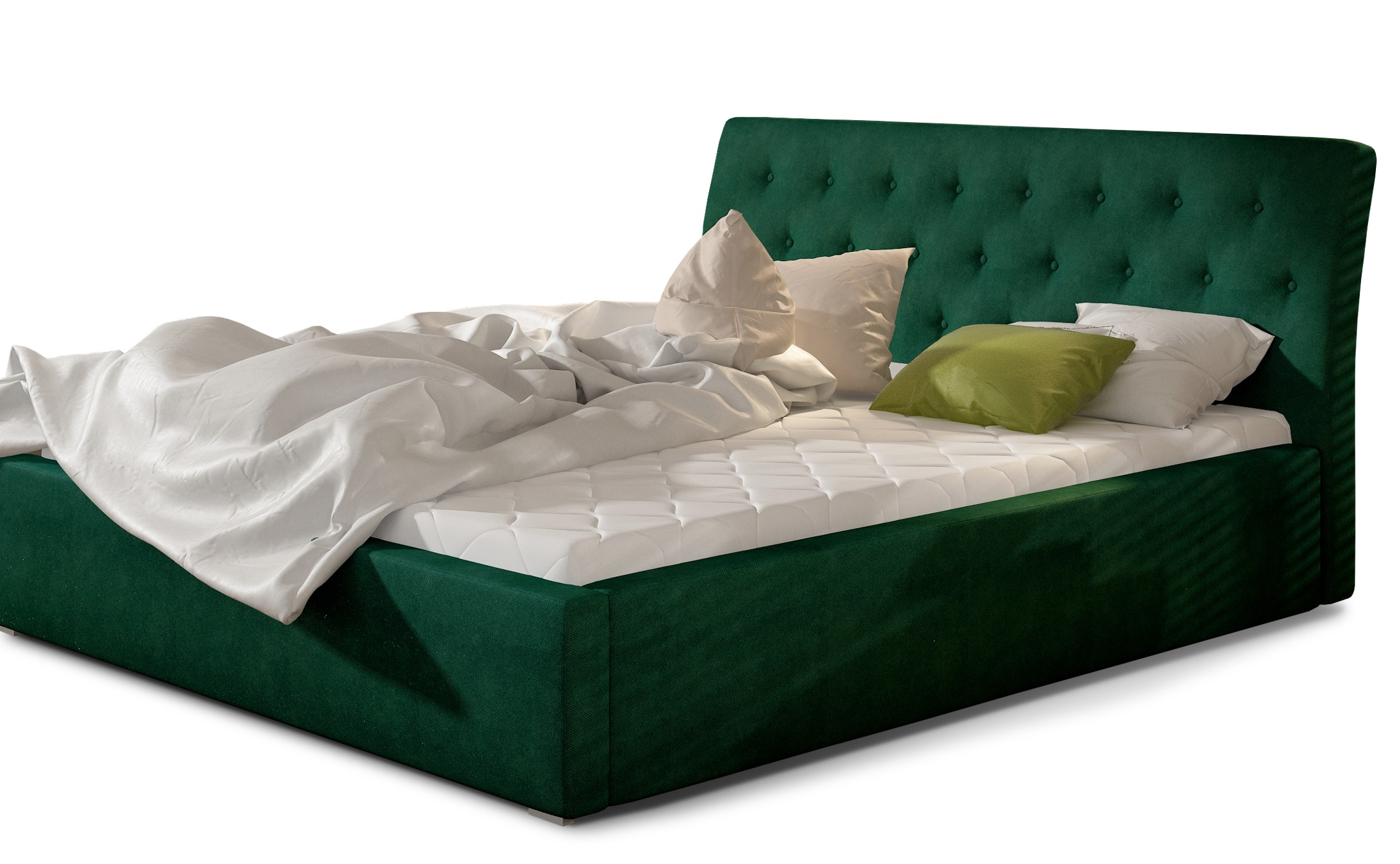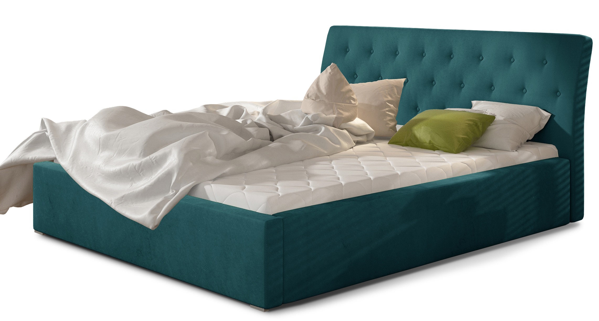 Lit velours capitonné Venizia-Couleur Bleu canard-160x200-Version avec sommier