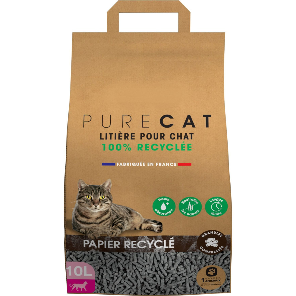 Litière granulés compressés en papier 100 % recyclé, 10 litres, pour chat