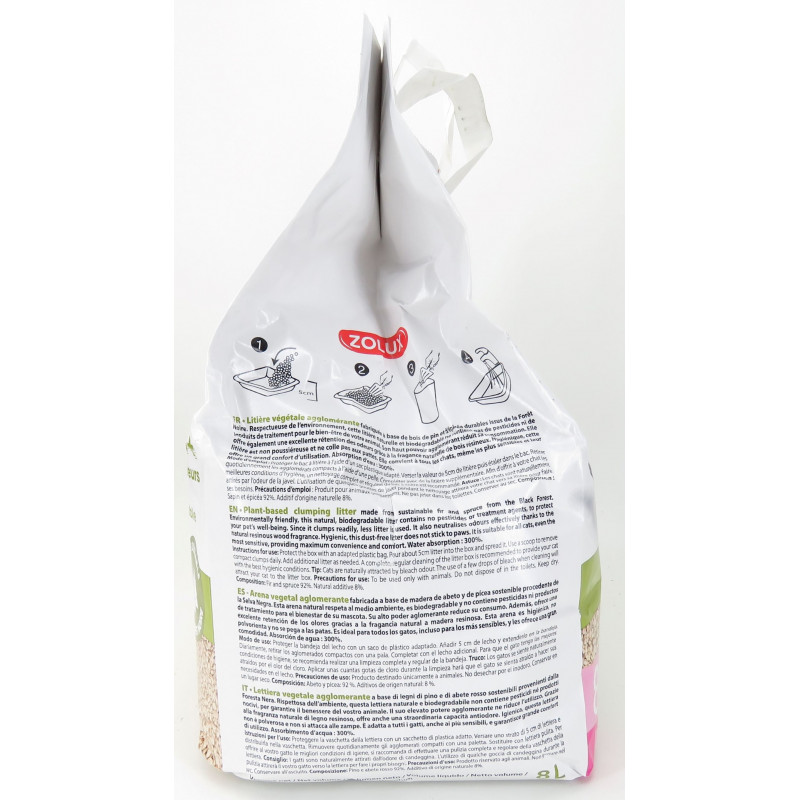 Litière végétale agglomérant fabriquée à base de bois de pin et d'épicéa durables issus de la forêt noire.