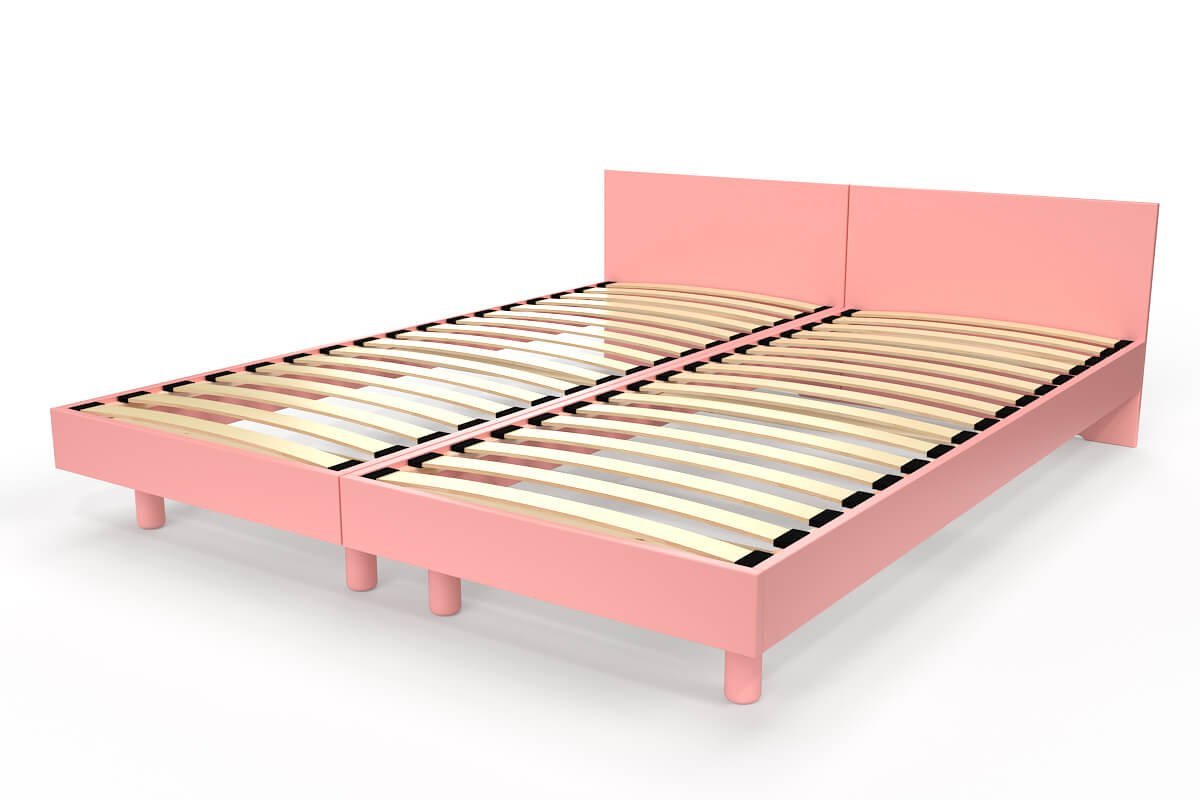 Lits jumeaux bois massif avec têtes Twin, Couleur: Rose Pastel, Dimensions: 90x200