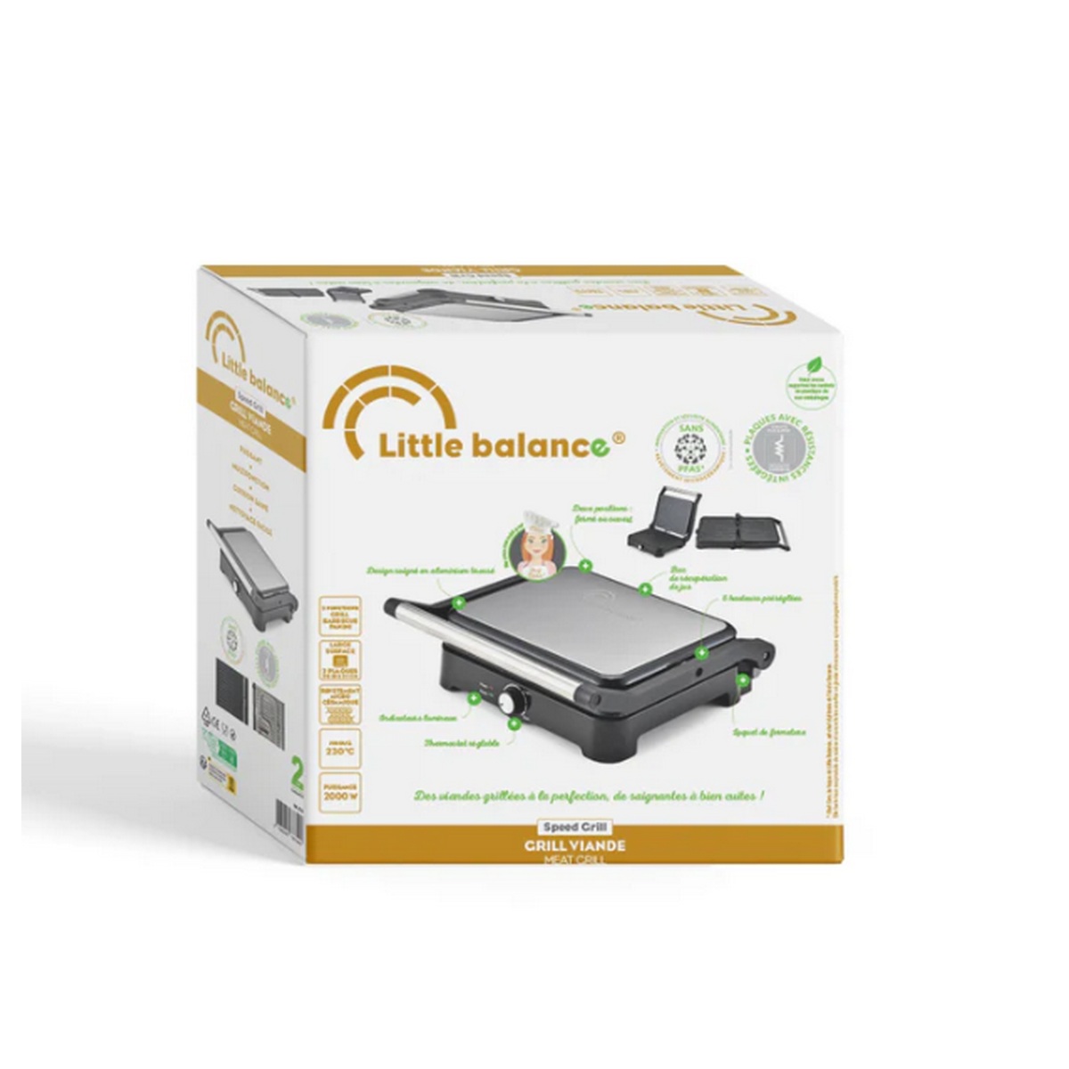 | Libellé | Little Balance 8744 - Grill collectif - Grill de table - 2000 Watt - Sans PFAS - Plaques XXL |