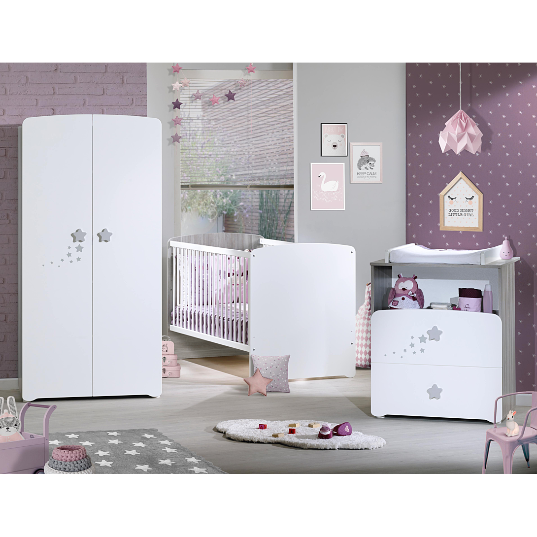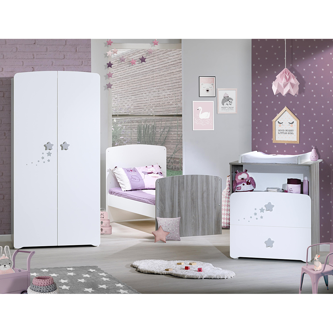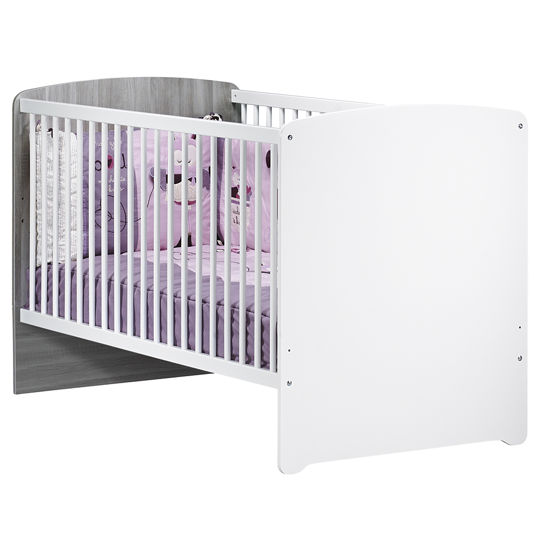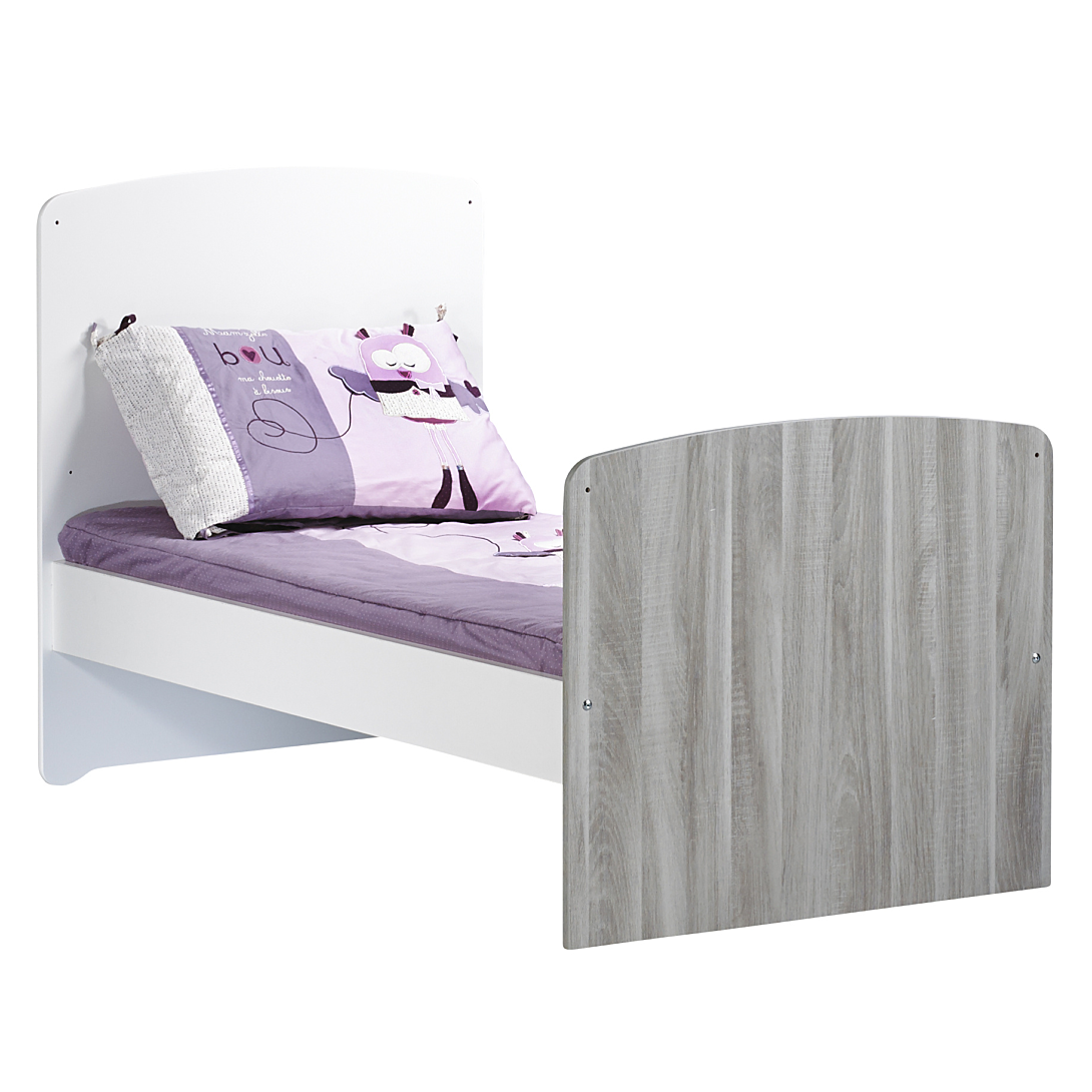 Une collection mixte aux tons chêne silex et blanc. Grâce à son kit de transformation (inclus), il se transforme en petit lit pour jeune enfant de 3 à 7 ans. Une solution idéale pour passer au lit de grand en douceur. En version bébé : sommier réglable en hauteur 3 positions. Barreaux amovibles pour permettre à bébé de sortir de son lit quand il est en âge de marcher.