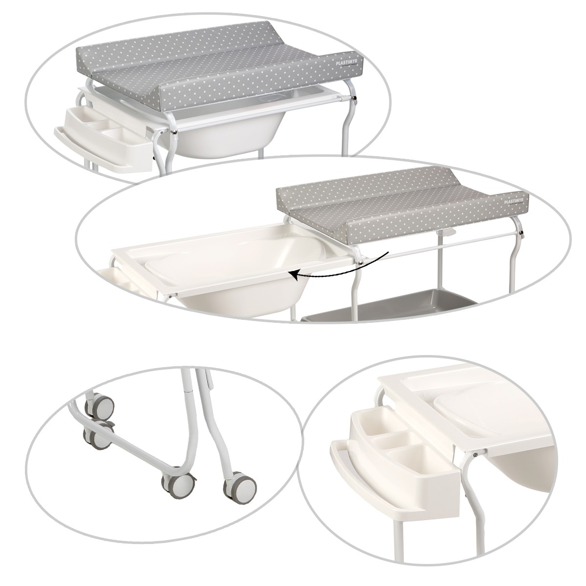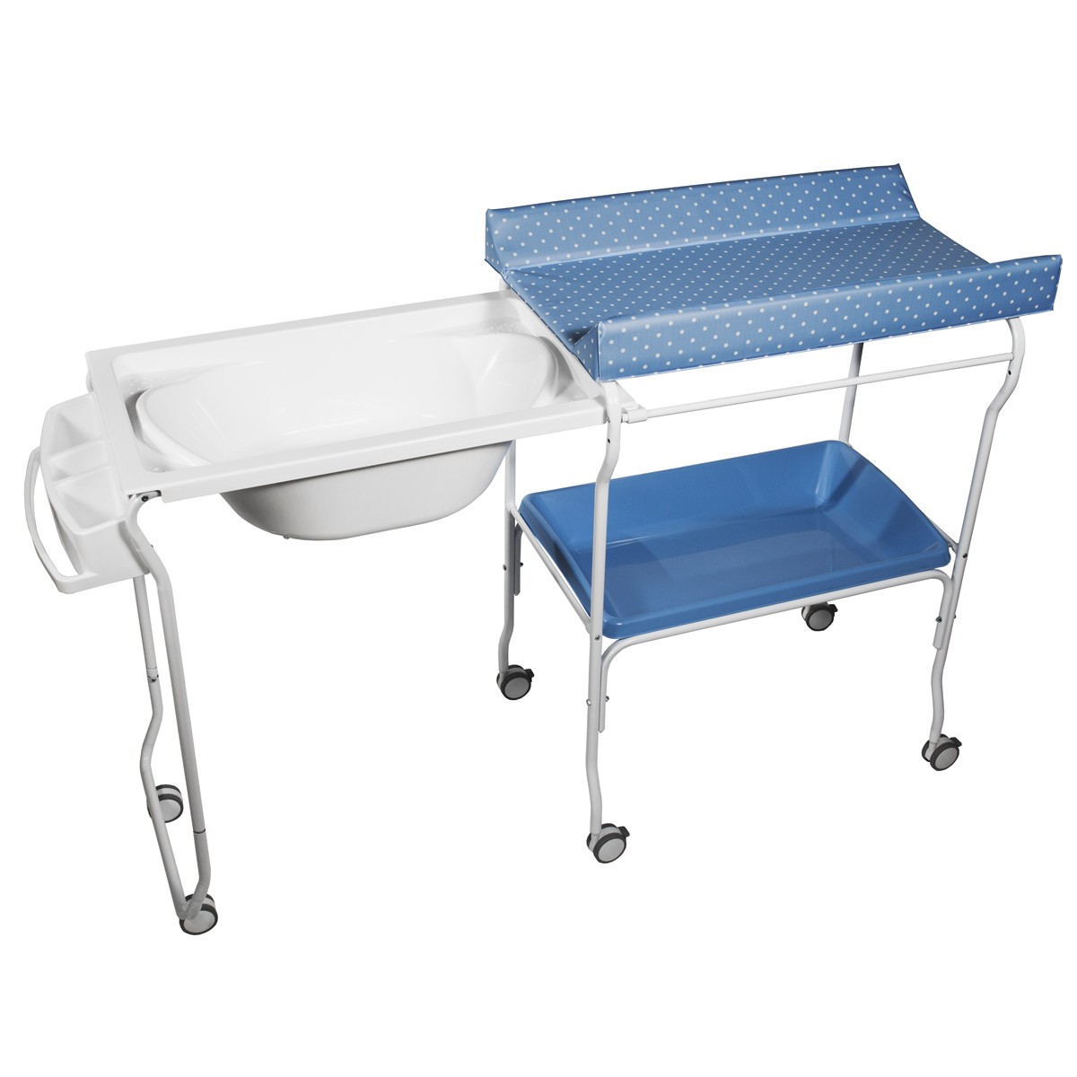 LIV Baignoire table à langer chariot sur roulettes Bleu motif pois