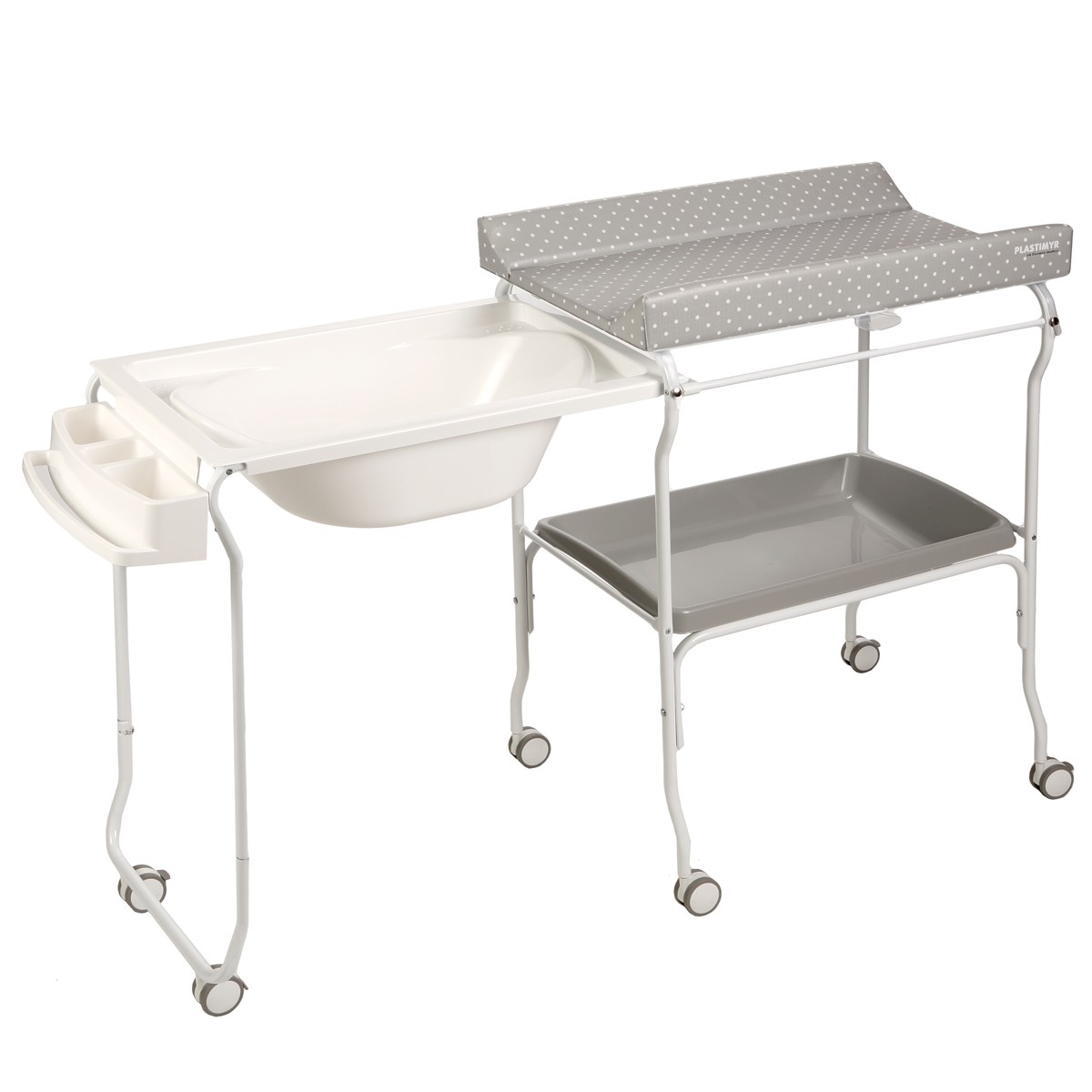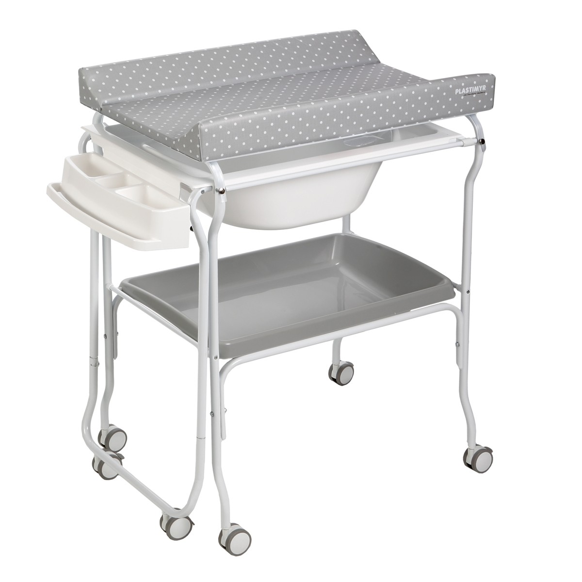 LIV Baignoire table à langer chariot sur roulettes Gris motif pois