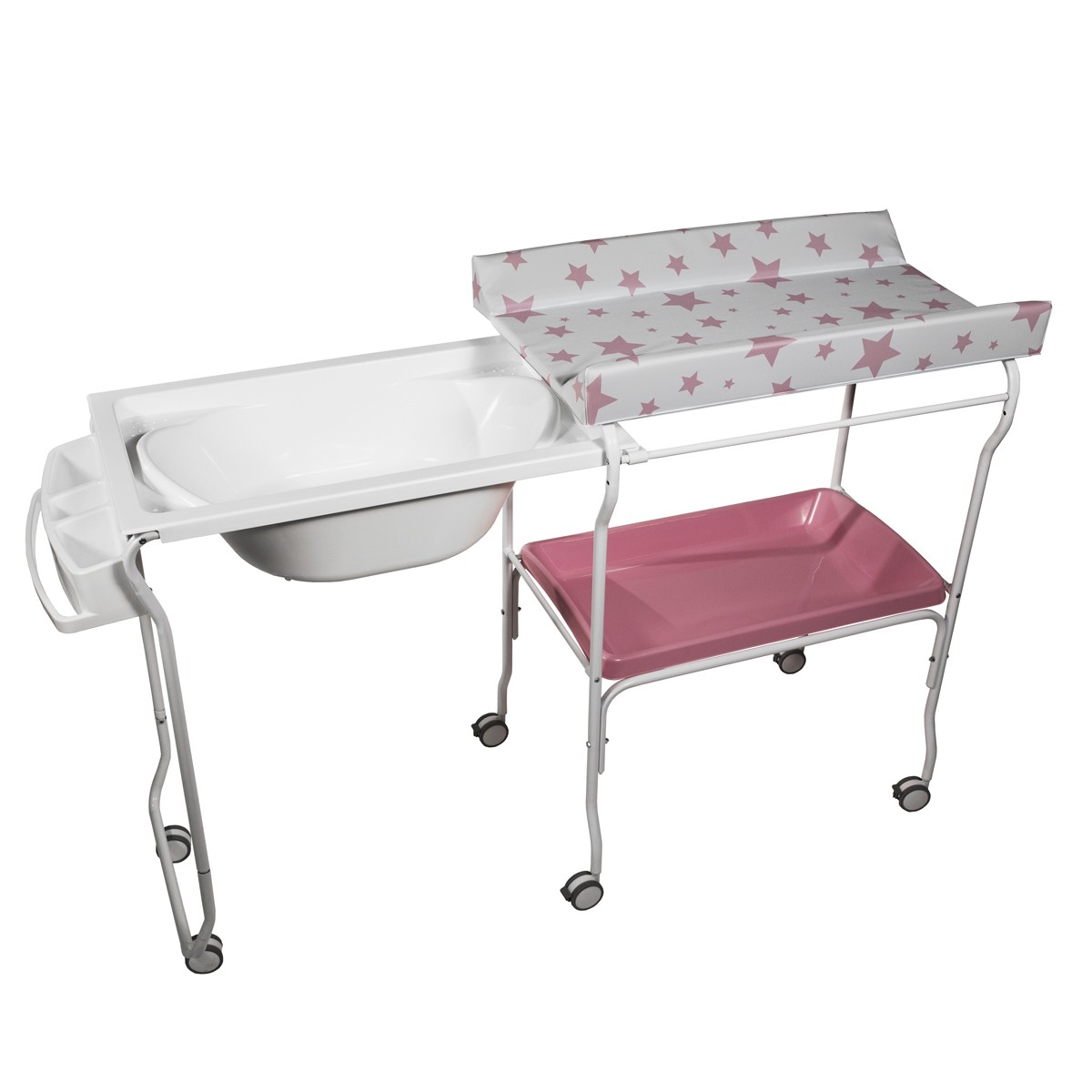 LIV Baignoire table à langer chariot sur roulettes Rose motif étoile