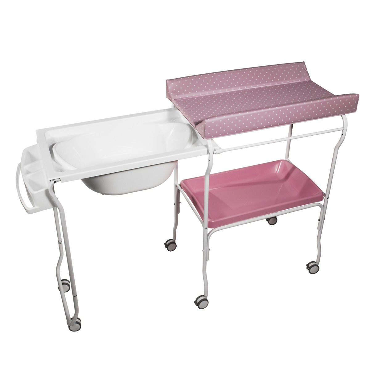 | Libellé | LIV Baignoire table à langer chariot sur roulettes Rose motif pois |