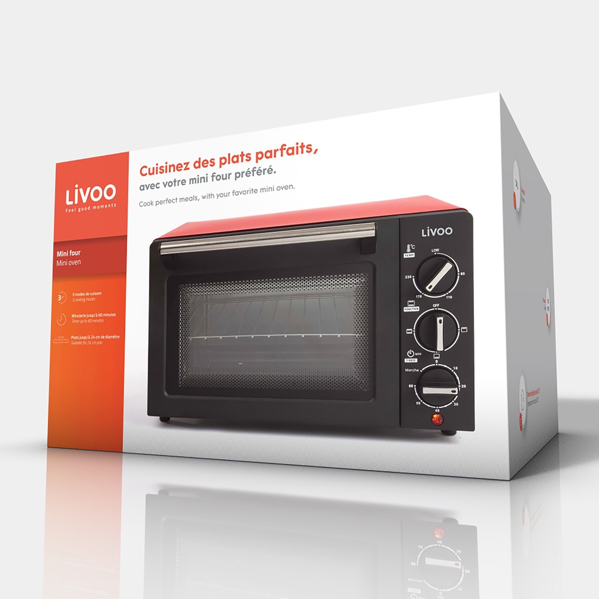 Livoo doc210 mini-four électrique compact 14 l | 3 modes de cuisson, thermostat réglable 230°c | grille +