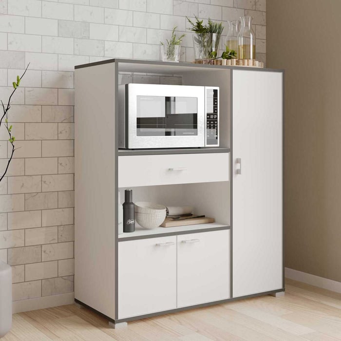 Rangement polyvalent et modulable : stockage micro onde 56x35x40cm, couvert, assiettes, alimentation… 2 rayons intérieurs ajustables sur 3 niveaux