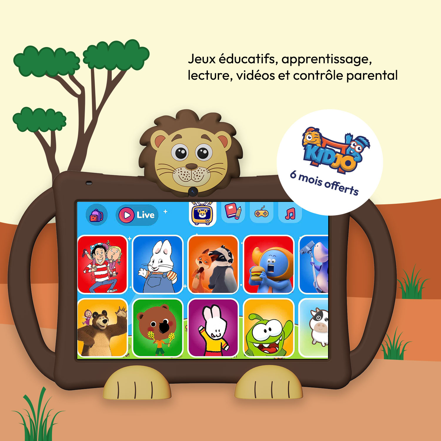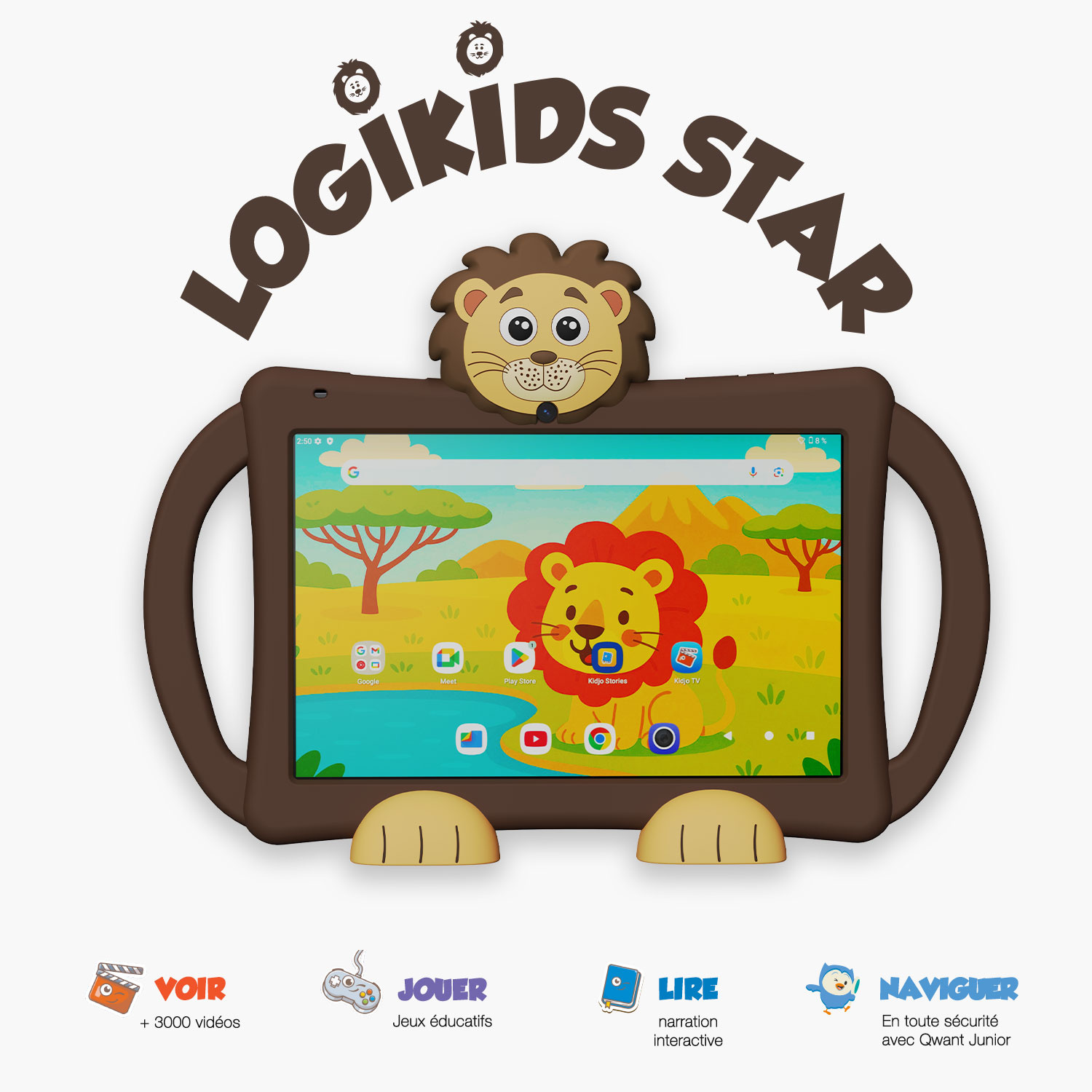 "La LOGIKIDS STAR est une tablette éducative Android 15 spécialement conçue pour les enfants de 3 à 10 ans. Elle transforme l’apprentissage en un moment de plaisir grâce à un environnement sûr et stimulant. Avec Kidjo, vos enfants découvrent plus de 4500 contenus ludiques : vidéos, jeux interactifs et livres audio adaptés à leur âge, sans publicité ni contenu inapproprié. Son écran HD IPS de 10.1 pouces offre une excellente qualité d’image et un grand confort visuel, idéal pour le divertissement et l’éducation. La LOGIKIDS STAR dispose d’un processeur Octa-Core 1.8 GHz, 4 Go de RAM et 64 Go de stockage, extensible jusqu’à 512 Go pour conserver toutes les applications et créations de vos enfants. La connexion WiFi 6 rapide, le port USB-C, et la prise jack 3.5 mm rendent son usage pratique et moderne. La coque en silicone souple protège la tablette des chocs, tandis que le contrôle parental Google Family Link permet aux parents de surveiller et limiter le temps d’écran. Livrée avec 6 mois d’abonnement Kidjo offerts, la LOGIKIDS STAR offre un espace sûr où les enfants apprennent à leur rythme. Elle intègre aussi Qwant Junior, un navigateur sécurisé adapté aux jeunes utilisateurs. La LOGIKIDS STAR n’est pas seulement une tablette : c’est un outil éducatif complet qui développe la curiosité, la créativité et l’autonomie de votre enfant tout en assurant une sécurité numérique maximale.