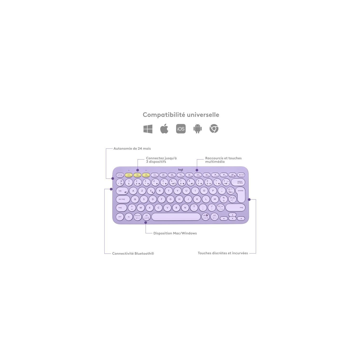 | Libellé | Logitech K380 clavier Bluetooth AZERTY Français Lavande |