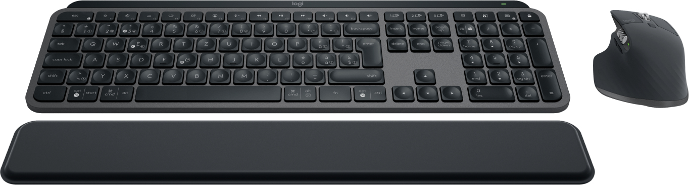 Logitech MX Keys S Combo. Facteur de forme du clavier: Taille réelle (100 %). Style de clavier: Droit. Interface de l'appareil: RF sans fil + Bluetooth, Interrupteur à clé de clavier: Commutateur de touche « ciseaux », Disposition des touches du clavier: QWERTZ. Type de rétro: LED, Repose-poignets. Utilisation recommandée: Bureau. Couleur du produit: Graphite. Souris incluse