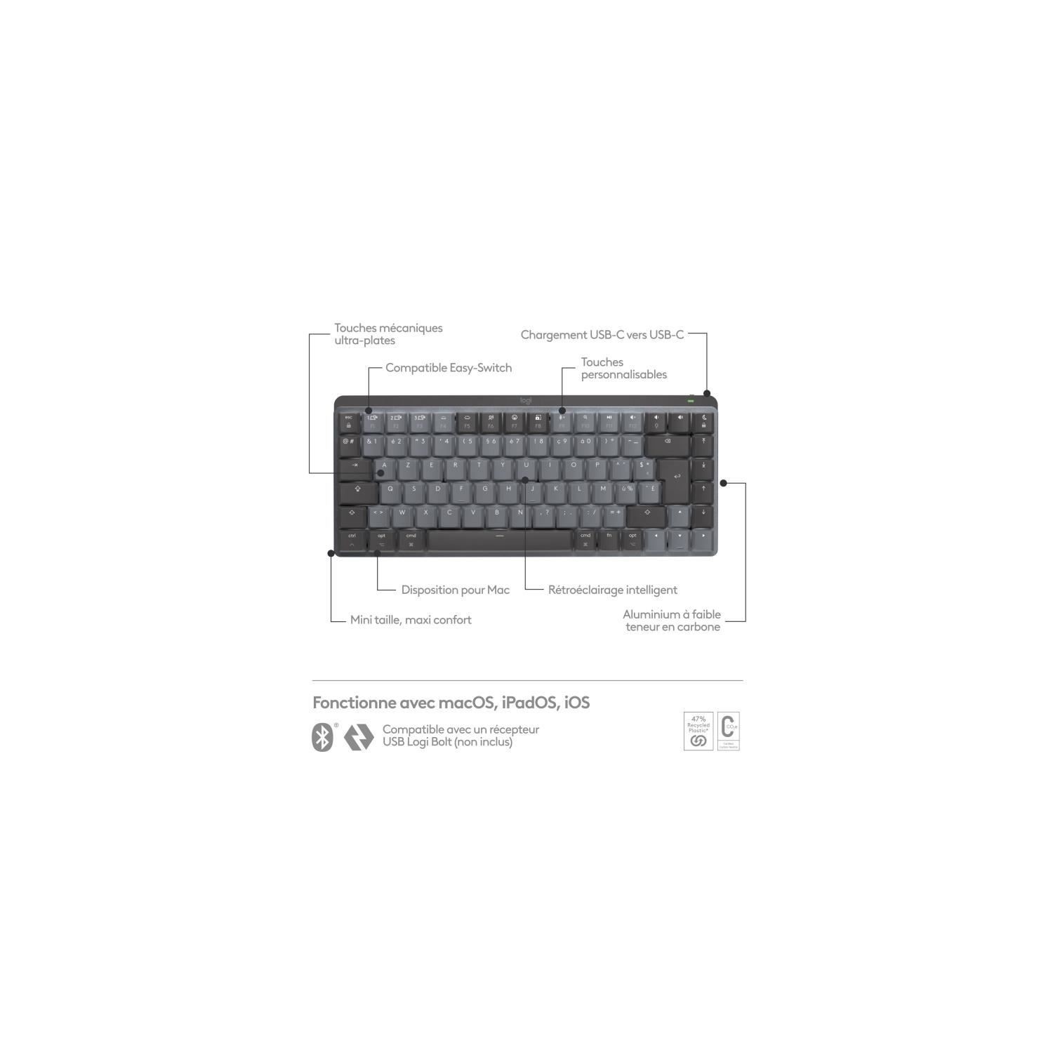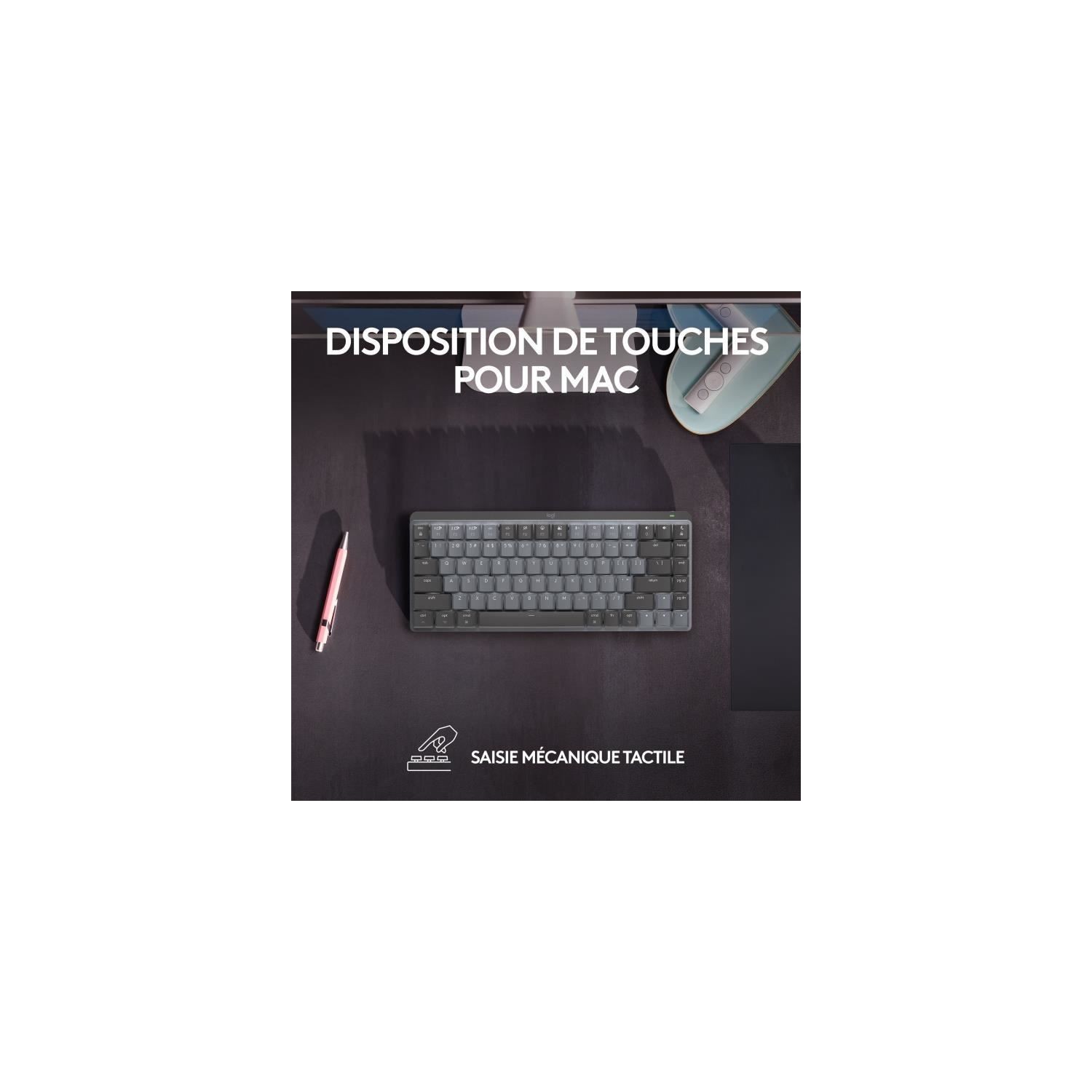 | Libellé | Logitech MX Mini Mechanical for Mac clavier Bluetooth AZERTY Français Graphite, Gris |