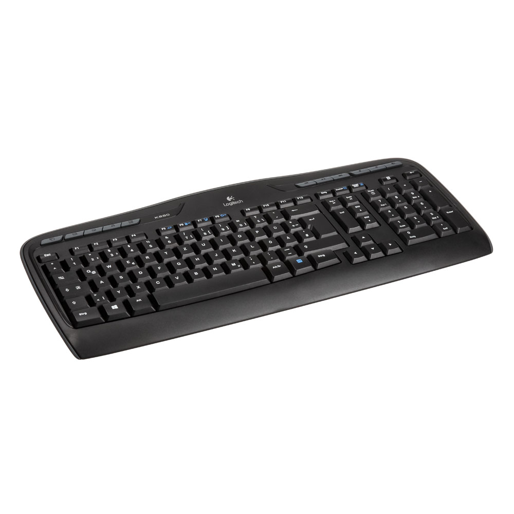 Plus produit Touches ultraplates et silencieuses, 11 raccourcis multimédia, 4 touches de fonction reprogrammables, autonomie prolongée (24 mois clavier / 12 mois souris), rangement du nano-récepteur dans la souris
