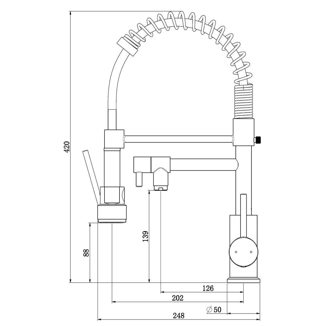 Vérifiez que la longueur du bec est compatible avec votre évier (voir dessin technique)