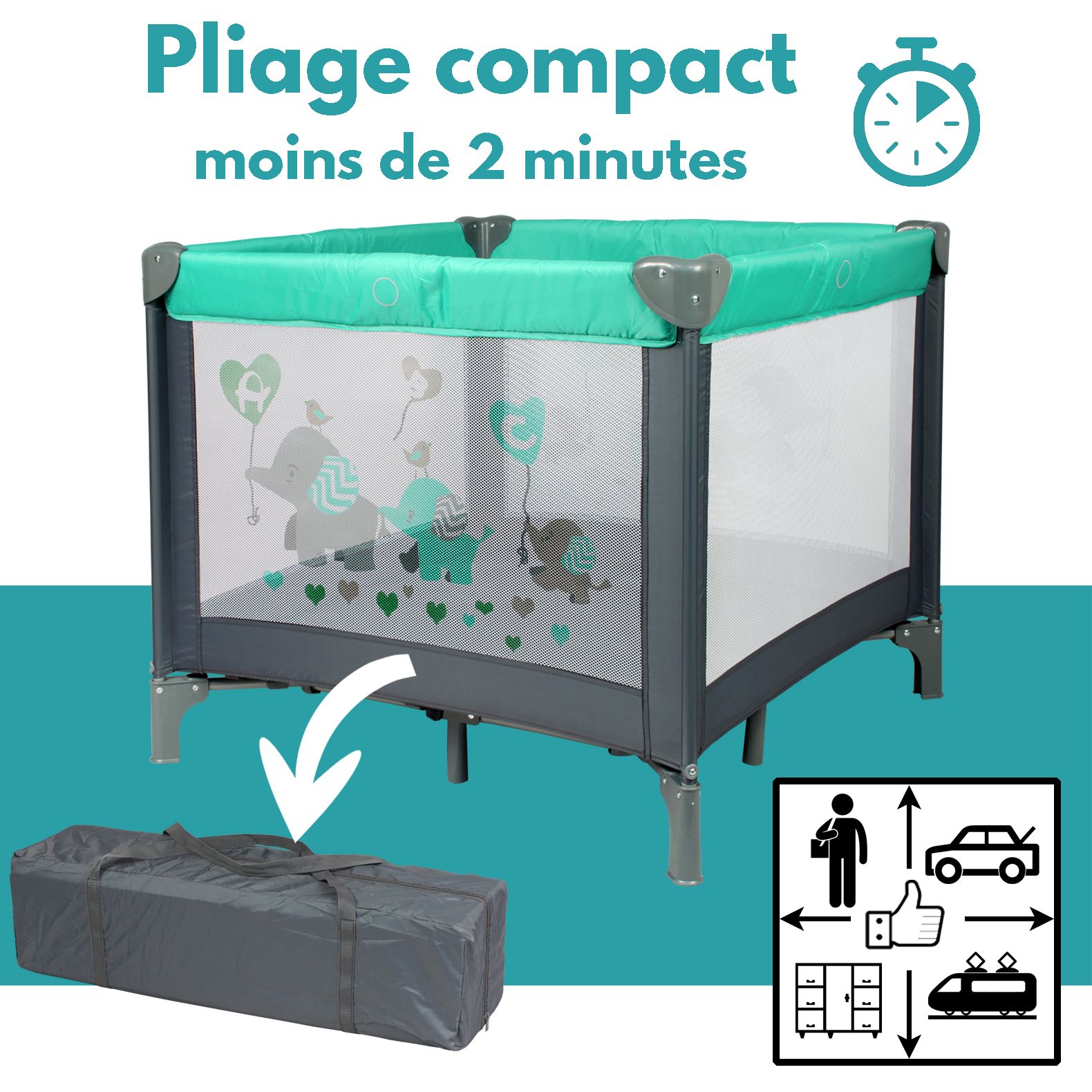 Looping Parc Bébé Pliant 90 x 90cm | Sac de Transport Inclus | Parade des Elephants
