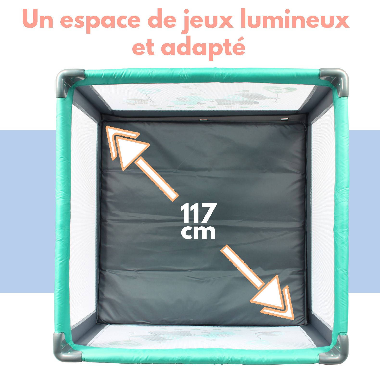 Le parc avec son deuxième niveau peut être utilisé comme un berceau pour laisser dormir le bébé pour la sieste ou pour la nuit. Il sera utile pour les parents de l'avoir à une hauteur suffisante pour le regarder facilement et le prendre sans faire d'effort dorsal (de nombreuses maman rencontre des douleurs lombaires après l'accouchement). Il offre au bébé un espace de jeux sûr à 2 niveaux, lumineux et personnalisé, où vous pourrez mettre tous les jeux (attention ils doivent être conforme à la directive jouet EN71 (CE) préférés de votre enfant. L'espace intérieur est suffisant pour le déplacement du bébé tout en restant d'un encombrement extérieur raisonnable pour trouver sa place dans toute les pièce de l'appartement ou de la maison. Son pliage compact et son sac de transport permettent de l'emporter avec soi chez des amis ou dans la famille, le bébé y retrouvera son environnement habituel et vous éviterez aussi les dangers d'endroits pas forcément aménagés ou prévus pour un enfant en bas âge. Bébé pourra s'y assoupir le temps d'une sieste, mais toujours sous la surveillance d'un adulte. Utilisé correctement et à bon escient, le parc pliant est un produit très utile et pratique.
