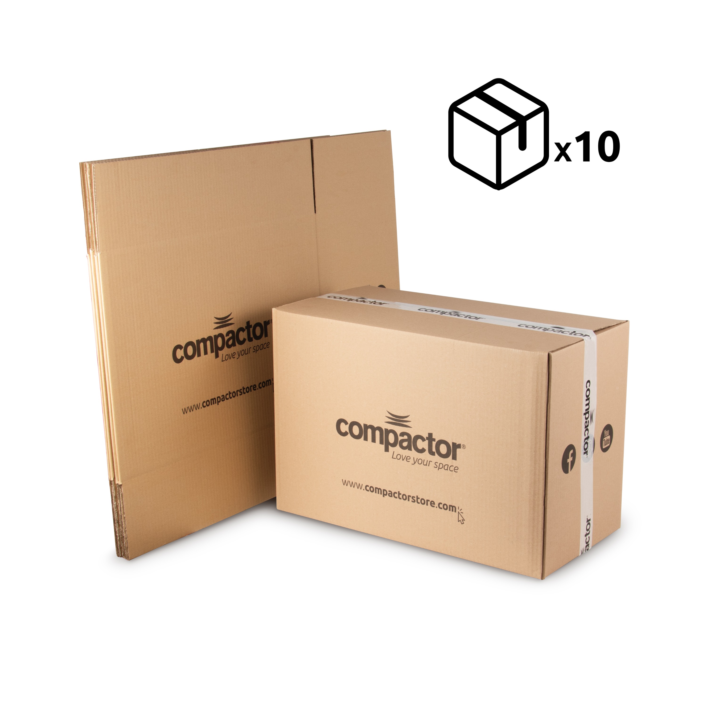 Ces cartons Compactor sont vendus par lot de 5, 10 ou 20. Pour vous aider dans la préparation de votre déménagement, pensez aussi aux Moving Packs Compactor qui associent cartons, plastique à bulles et dérouleur d'adhésif.