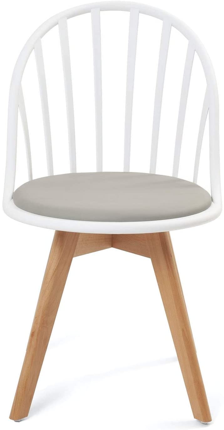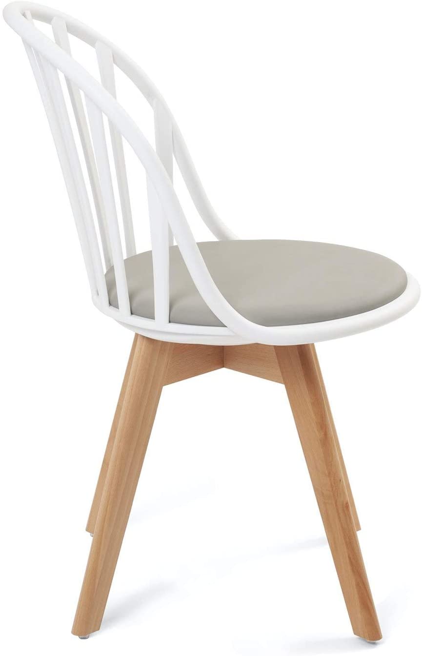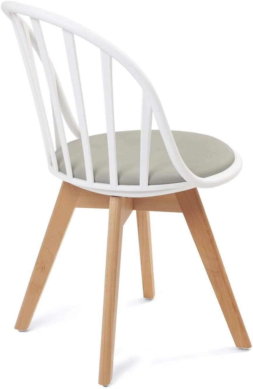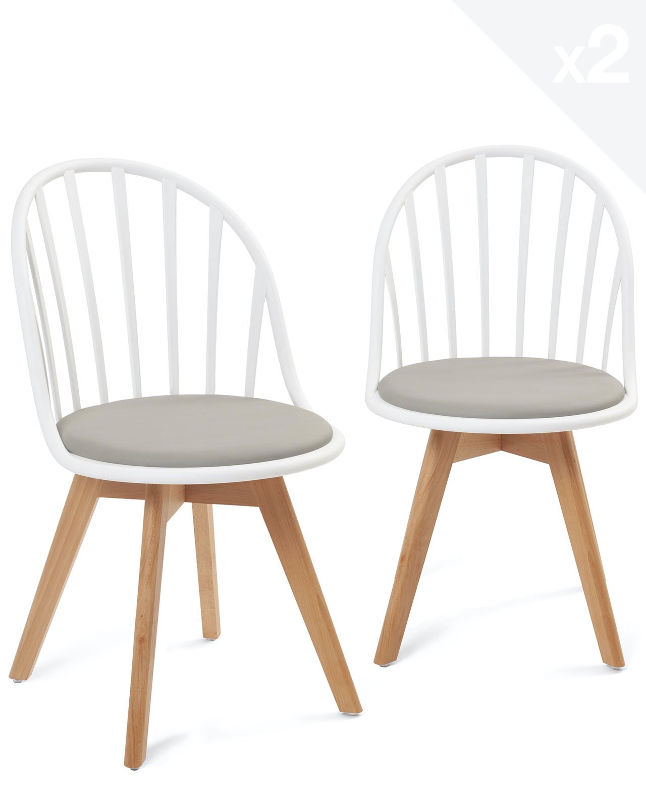 | Libellé | Lot 2 chaises bistrot à barreaux scandinaves coussin PU pieds bois hêtre clair BOLD (Blanc gris) |