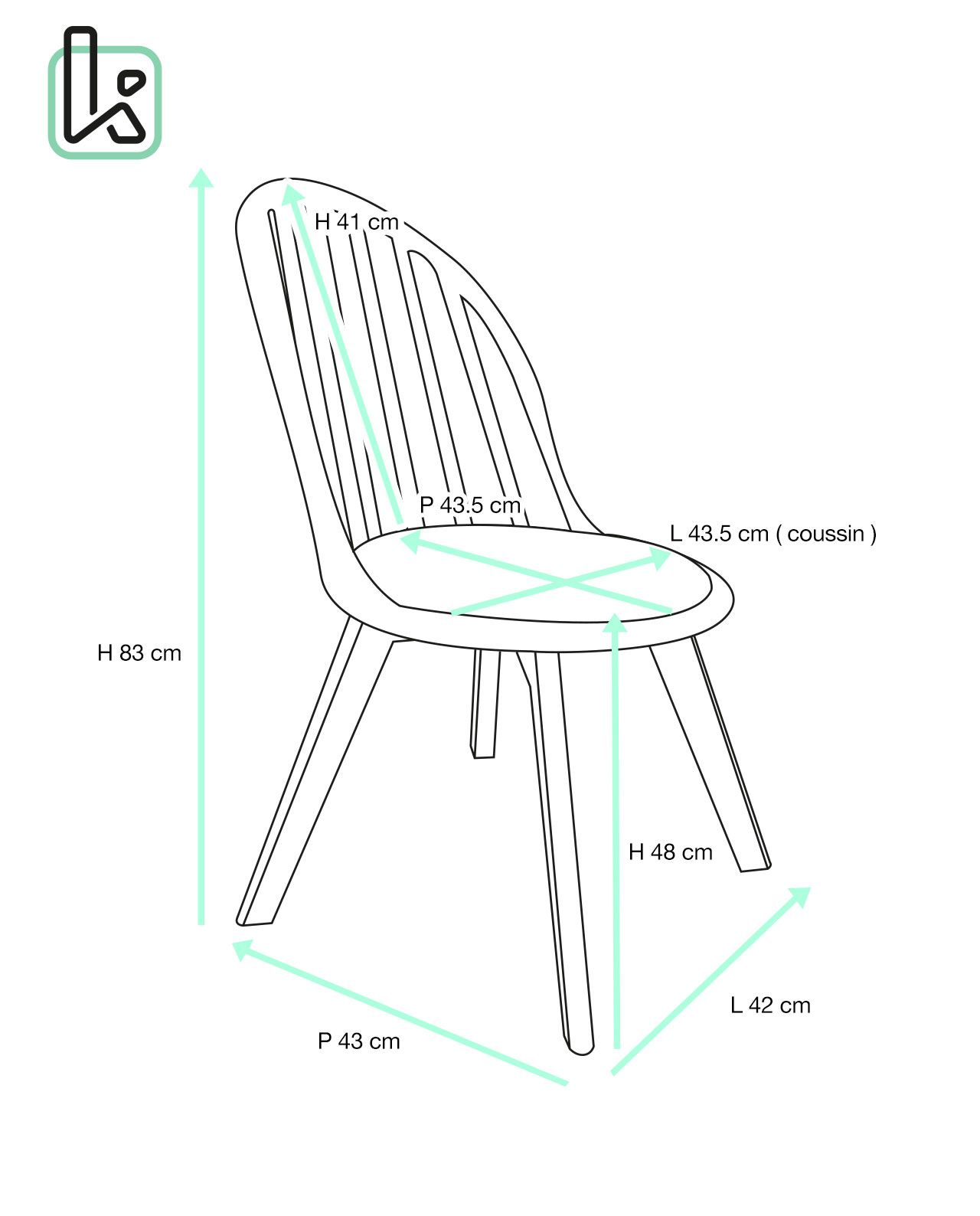 - Assise : 43,5 (L) x 43,5 (P) cm