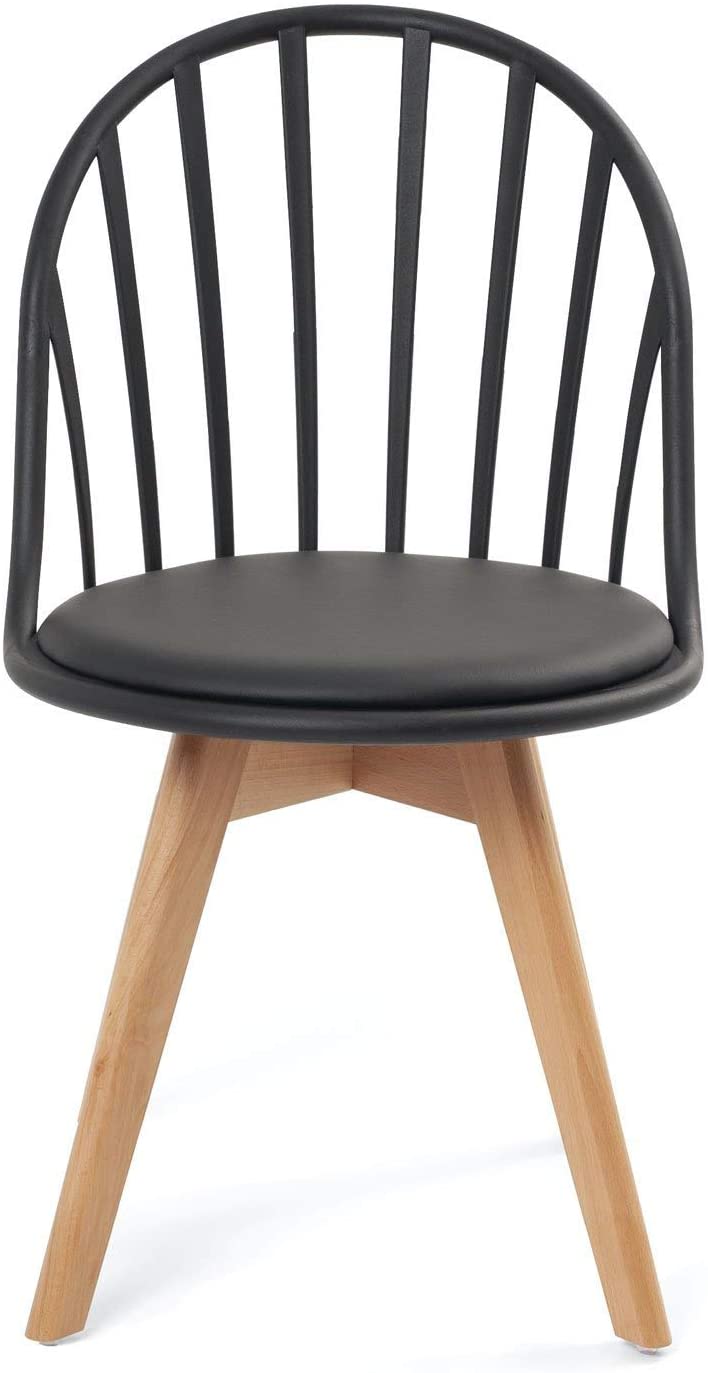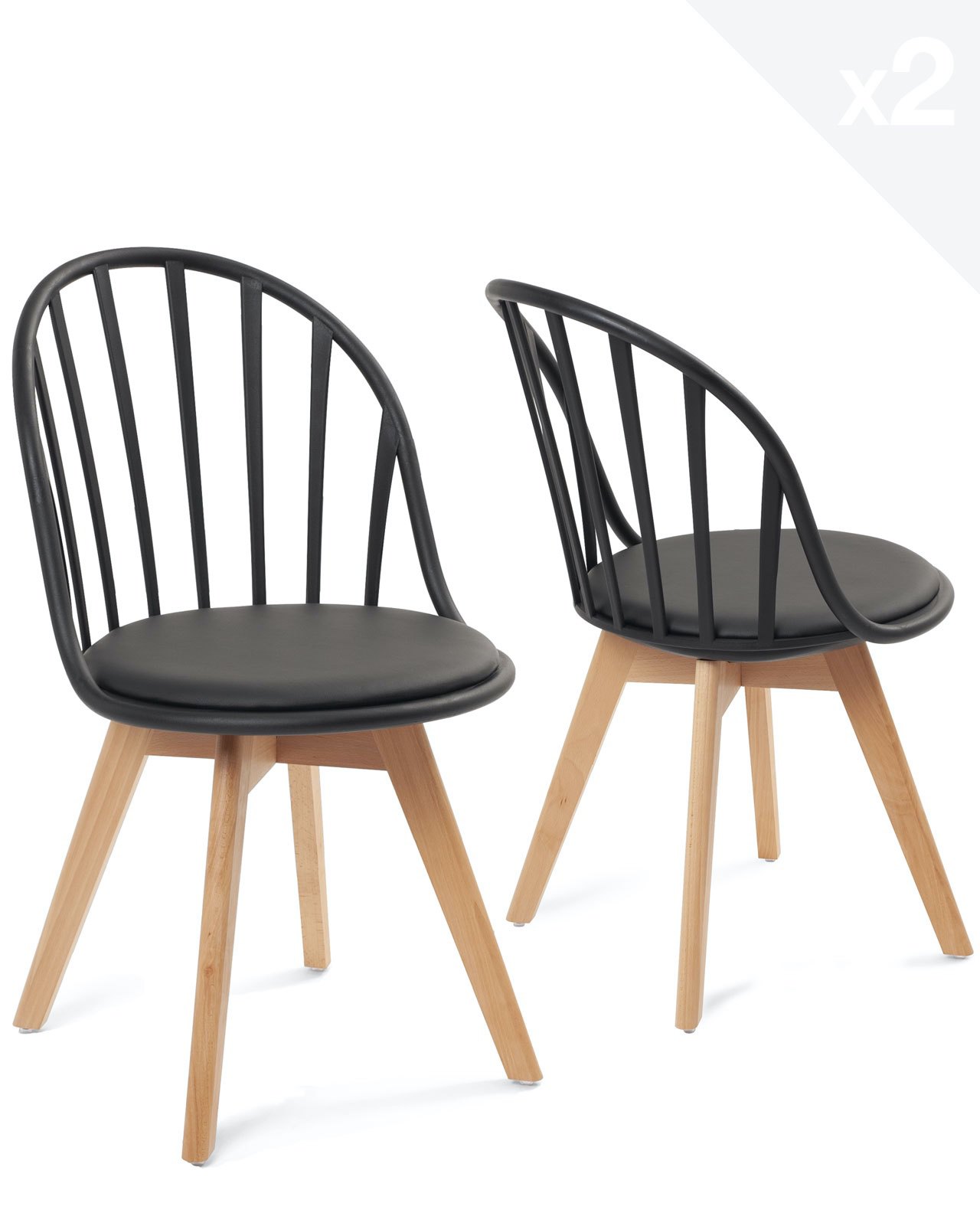 | Libellé | Lot 2 chaises bistrot à barreaux scandinaves coussin PU pieds bois hêtre clair BOLD (Noir) |