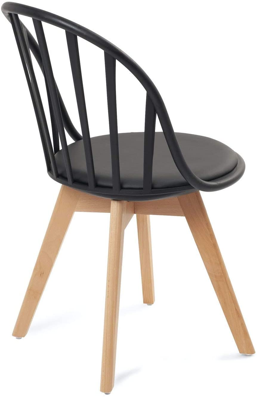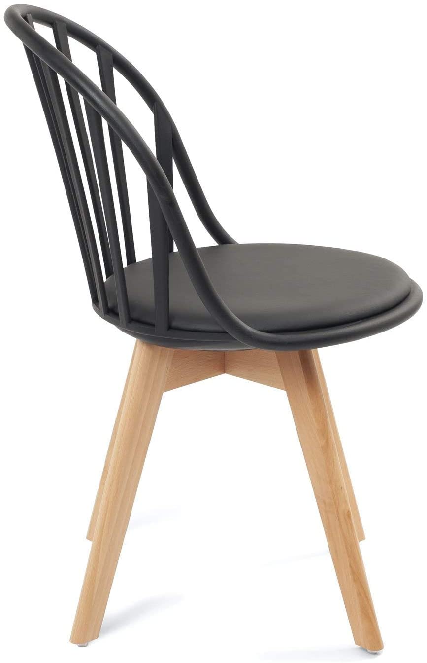 Lot 2 chaises bistrot à barreaux scandinaves coussin PU pieds bois hêtre clair BOLD (Noir)