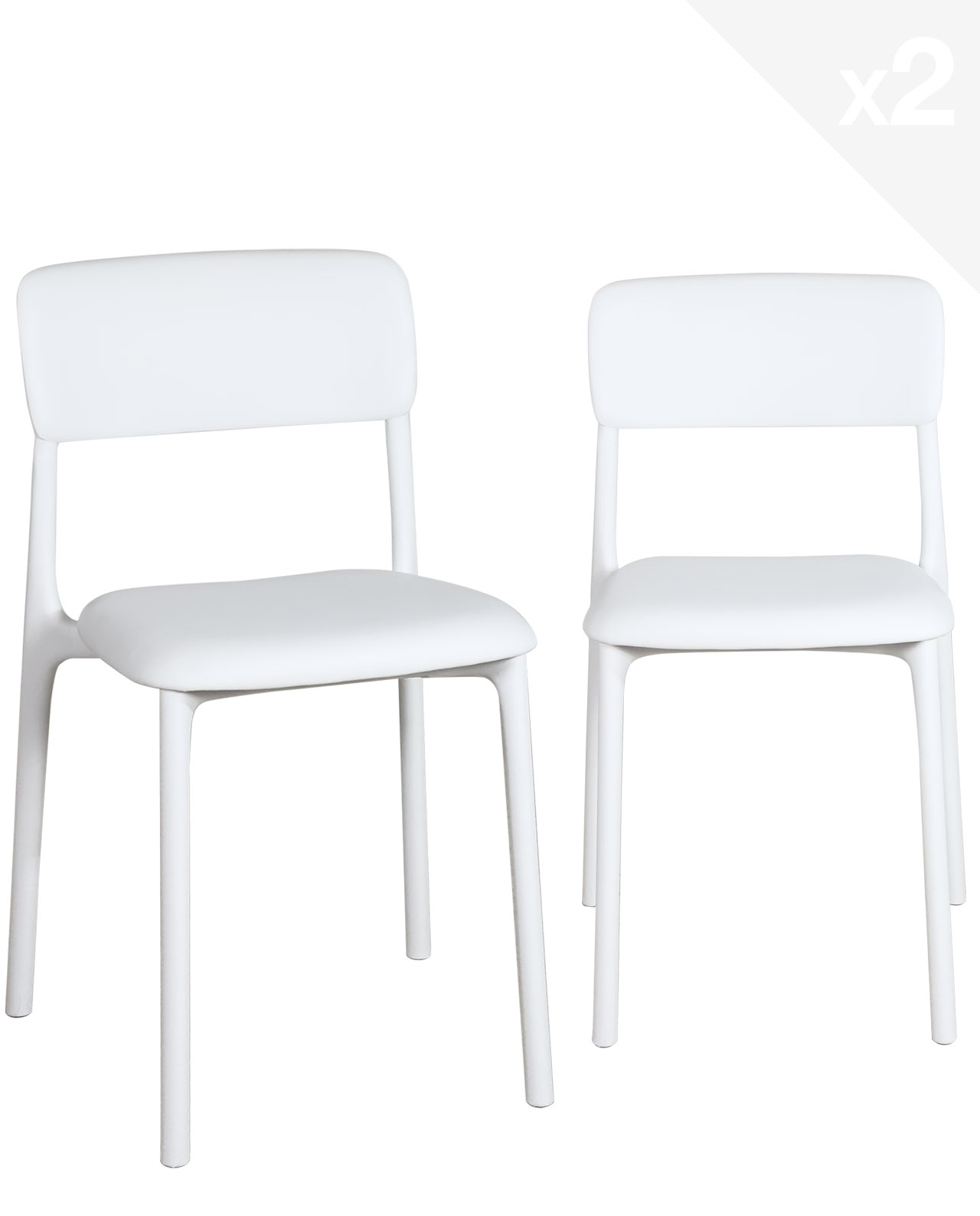 Lot 2 chaises contemporaines de cuisine avec coussin PU rembourré RIM (Blanc)