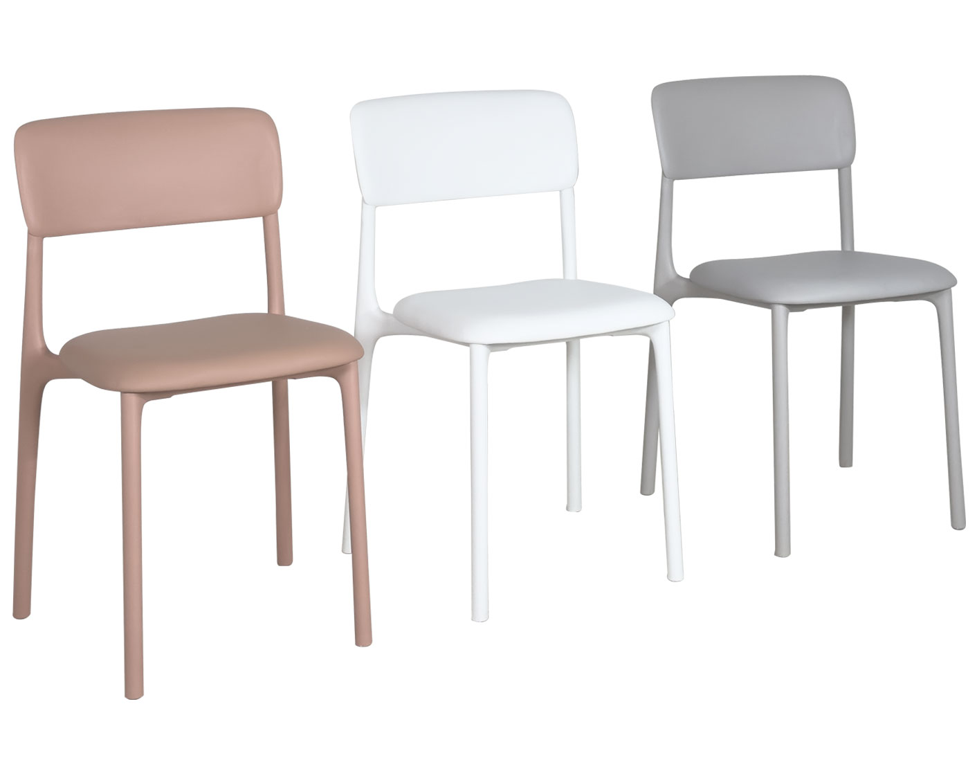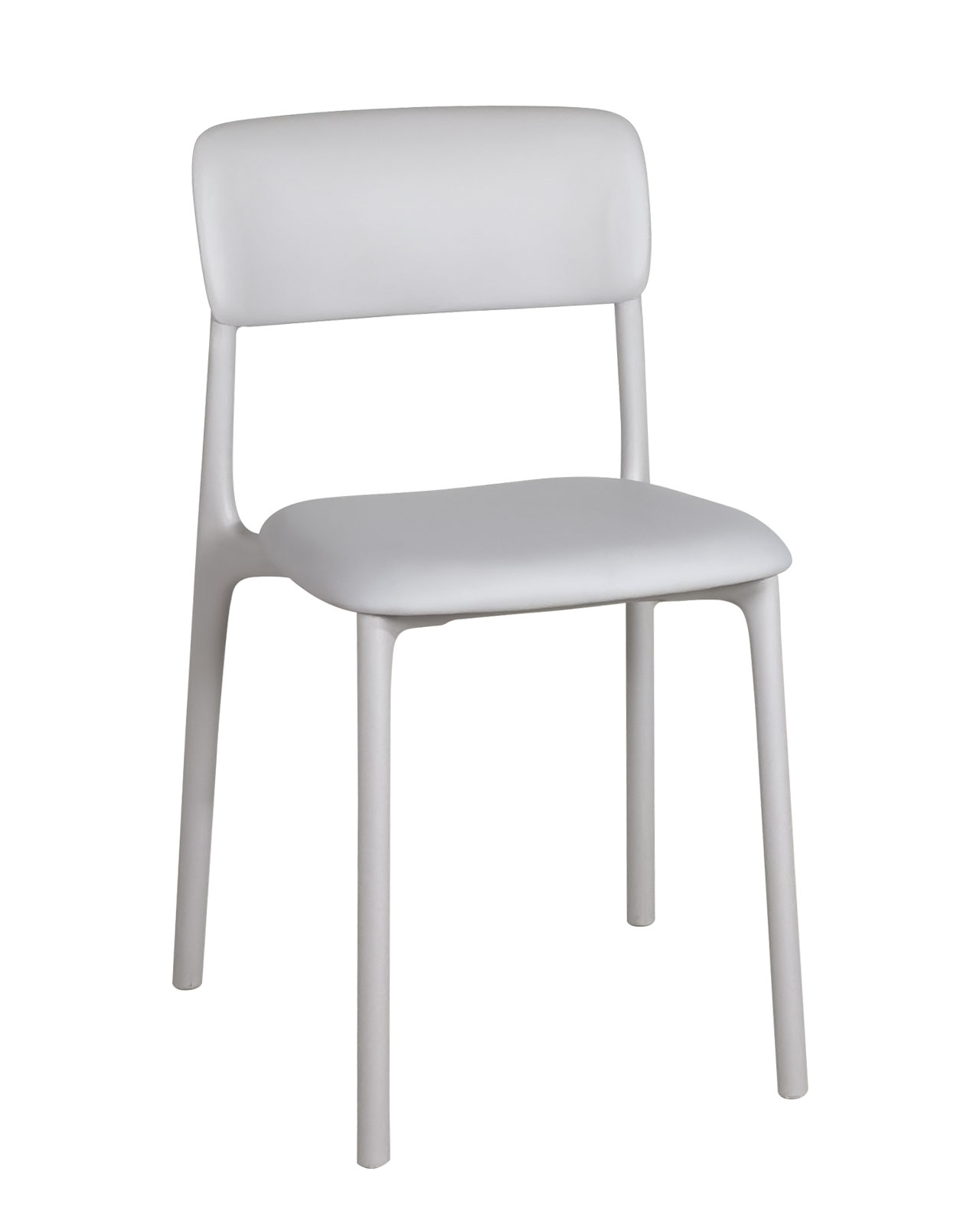 | Plus produit | Une chaise de cuisine design en polypropylène léger et résistant équipée d'un coussin fixe en similicuir rembourré |