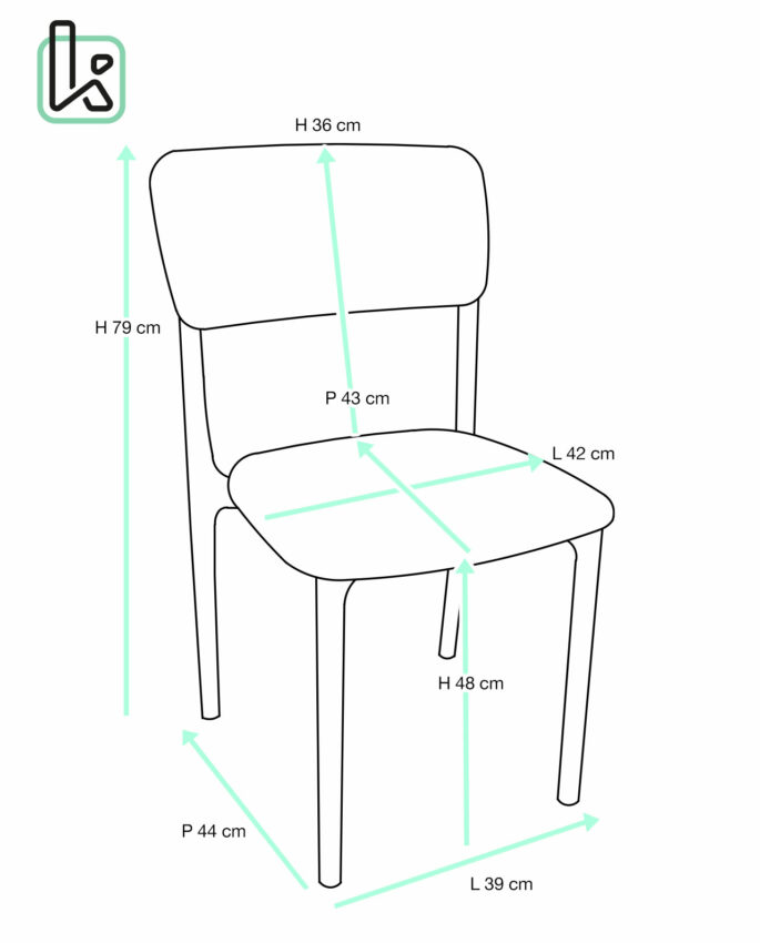 - Assise / dossier : 42 (L) x 43 (P) x 36 (H) cm