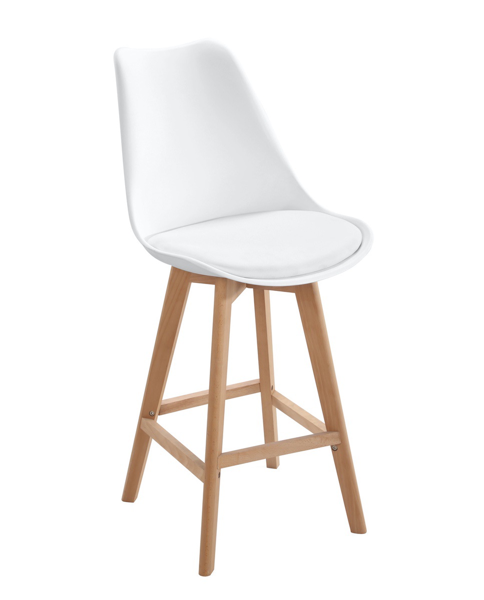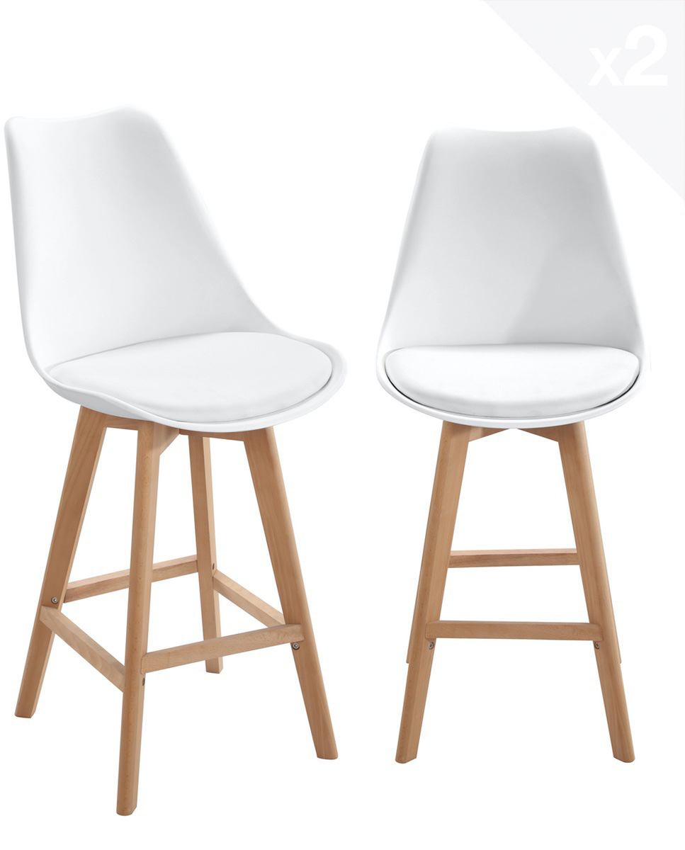 | Libellé | Lot 2 chaises de bar scandinaves 70cm large siège coussin PU pieds bois TIKA (blanc) |