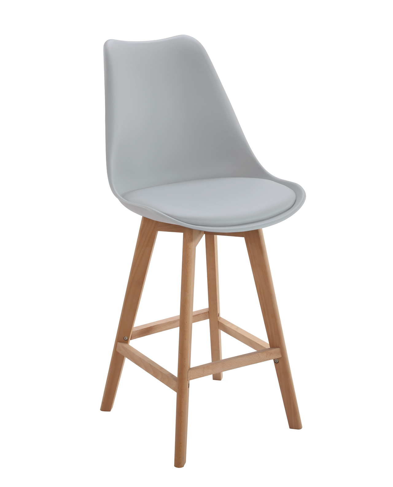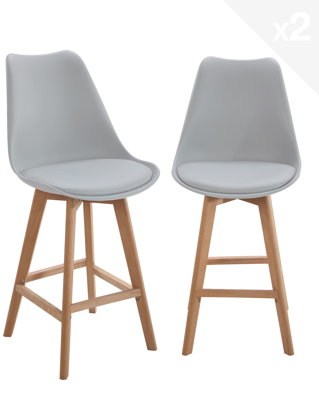 | Libellé | Lot 2 chaises de bar scandinaves 70cm large siège coussin PU pieds bois TIKA (gris) |