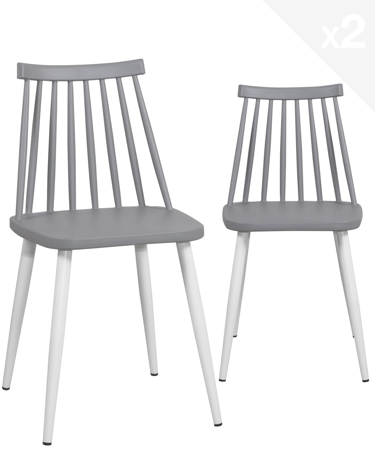 | Libellé | Lot 2 chaises de cuisine bistrot café siège plastique à barreaux pieds métal BAO (gris) |