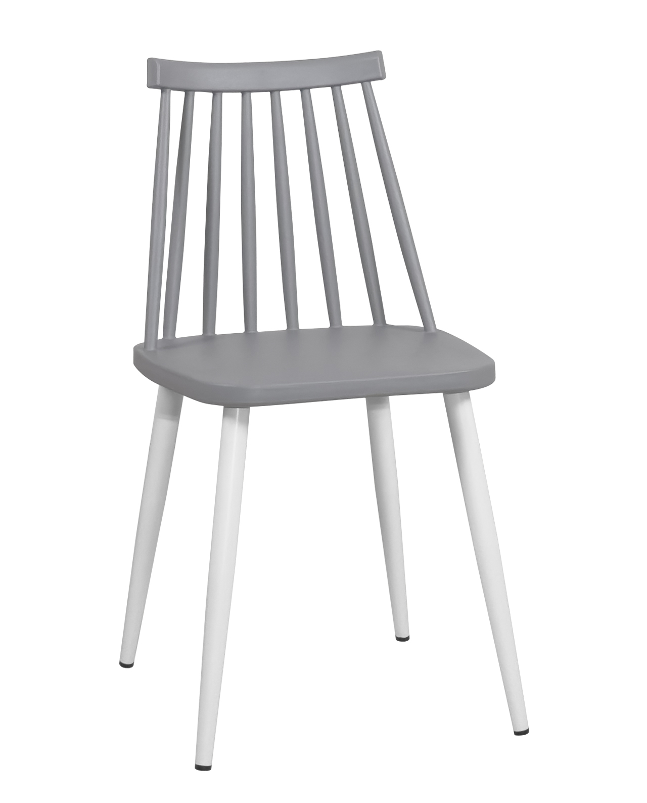 Lot 2 chaises de cuisine bistrot café siège plastique à barreaux pieds métal BAO (gris)