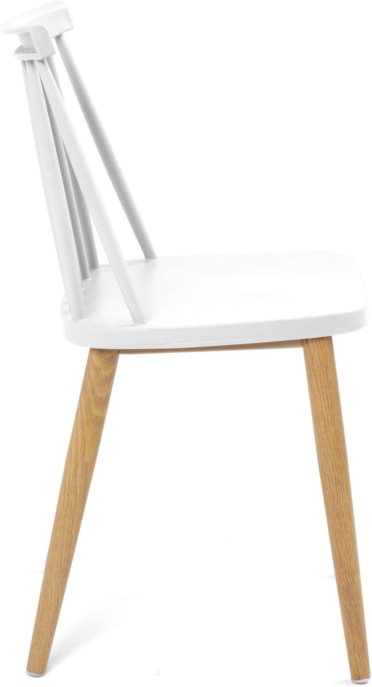 Lot 2 chaises de cuisine bistrot café siège plastique à barreaux pieds métal ton bois BAO (blanc)