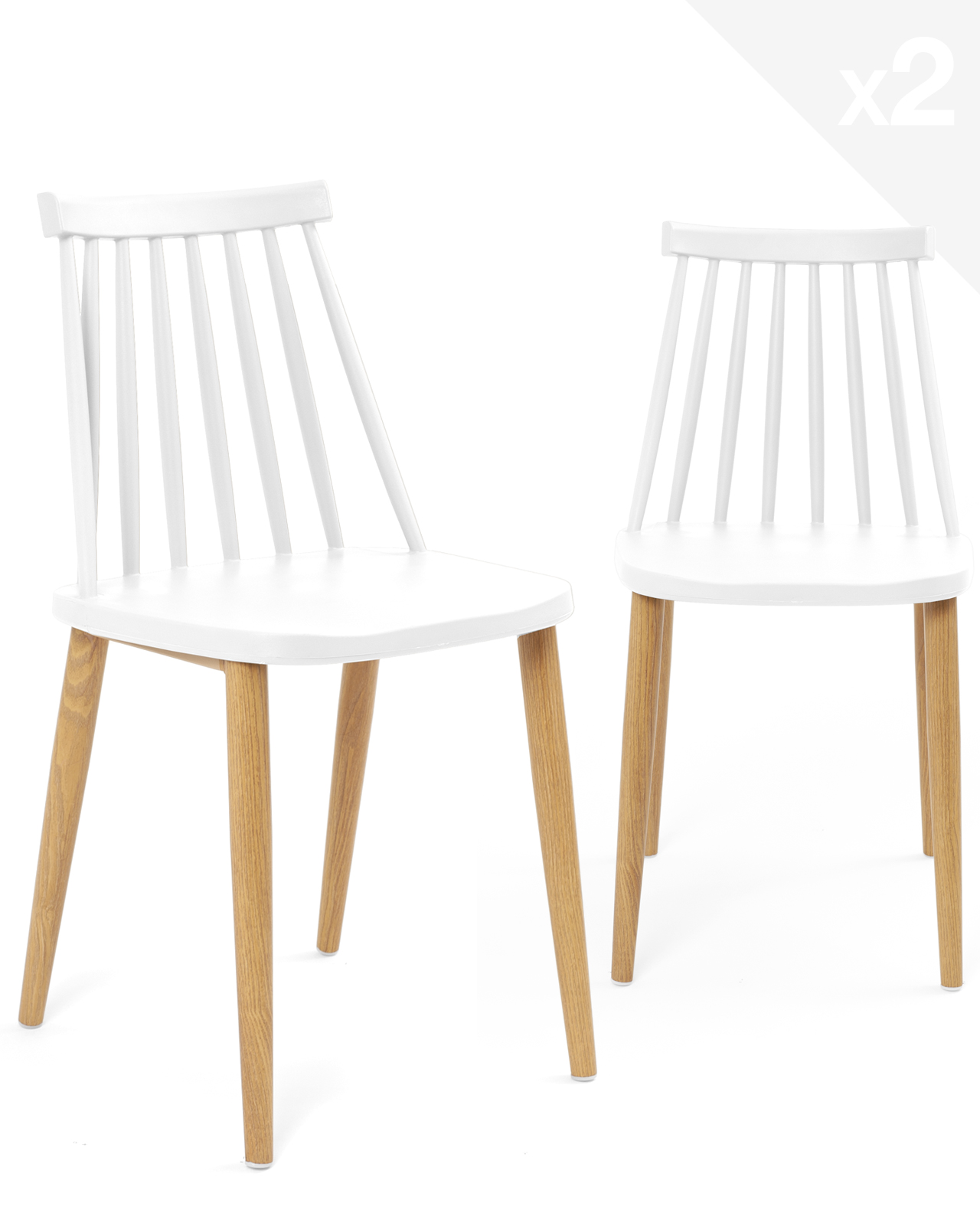| Libellé | Lot 2 chaises de cuisine bistrot café siège plastique à barreaux pieds métal ton bois BAO (blanc) |