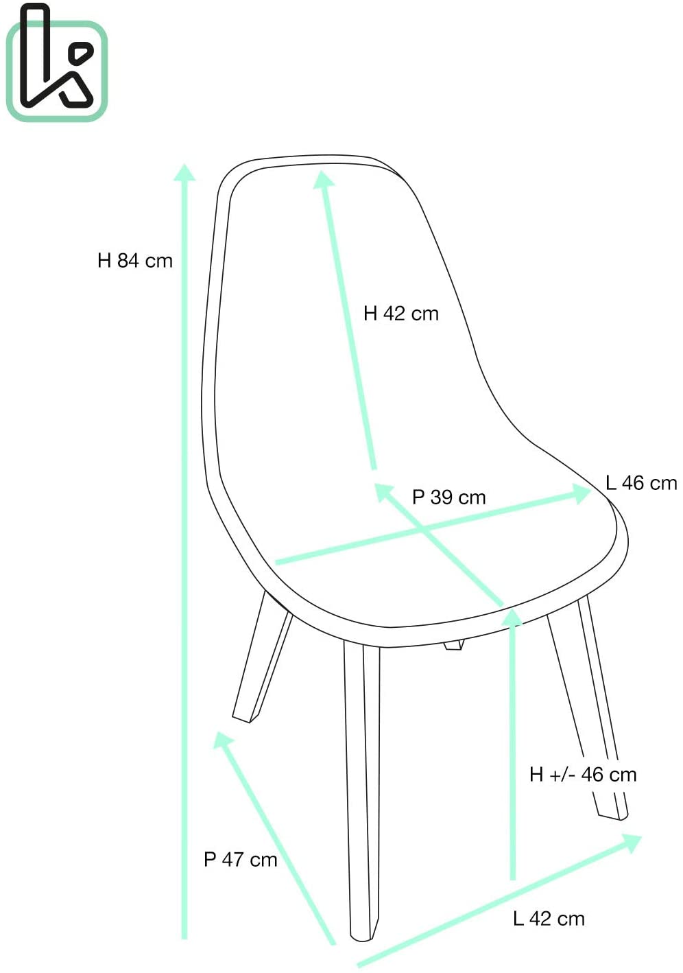 - Assise / Dossier : 46 (L) x 39 (P) x 42 (H)cm