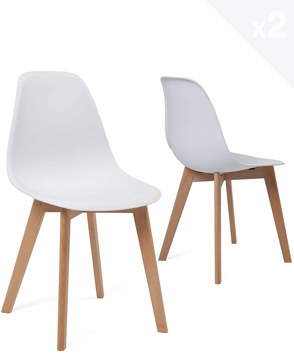 | Libellé | Lot 2 chaises de cuisine scandinaves siège plastique souple pieds bois hêtre clair NAO (blanc) |