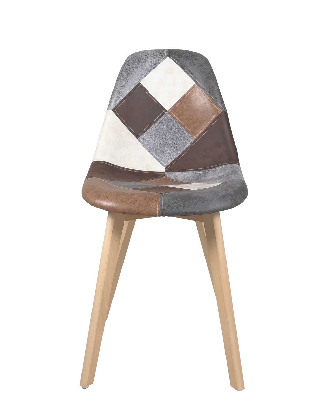 Lot 2 chaises patchwork multicolore scandinaves rembourré pieds bois hêtre clair NADA (marron)