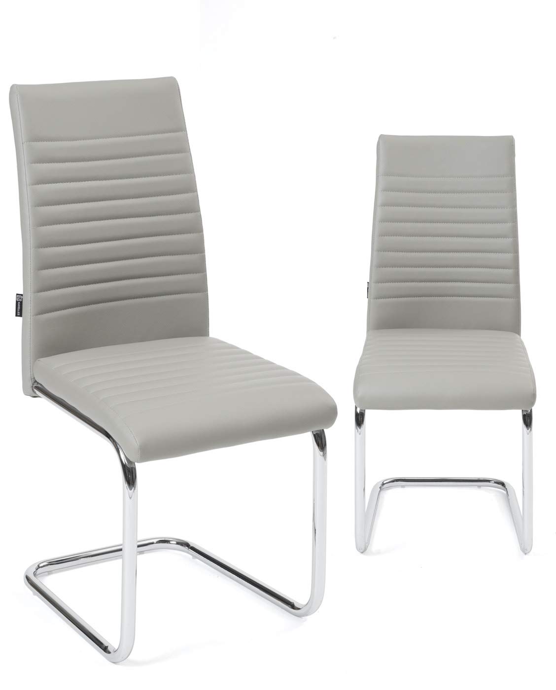 Lot 2 chaises salle à manger design siège PU rembourré pied chrome OPUS (gris)