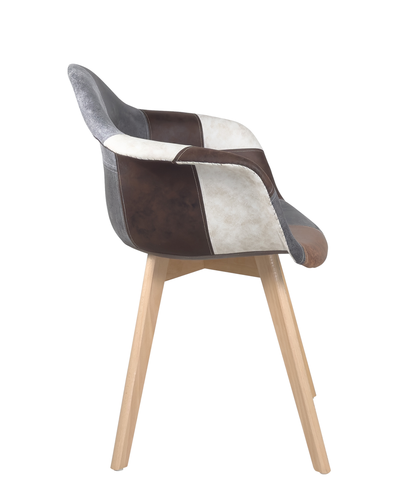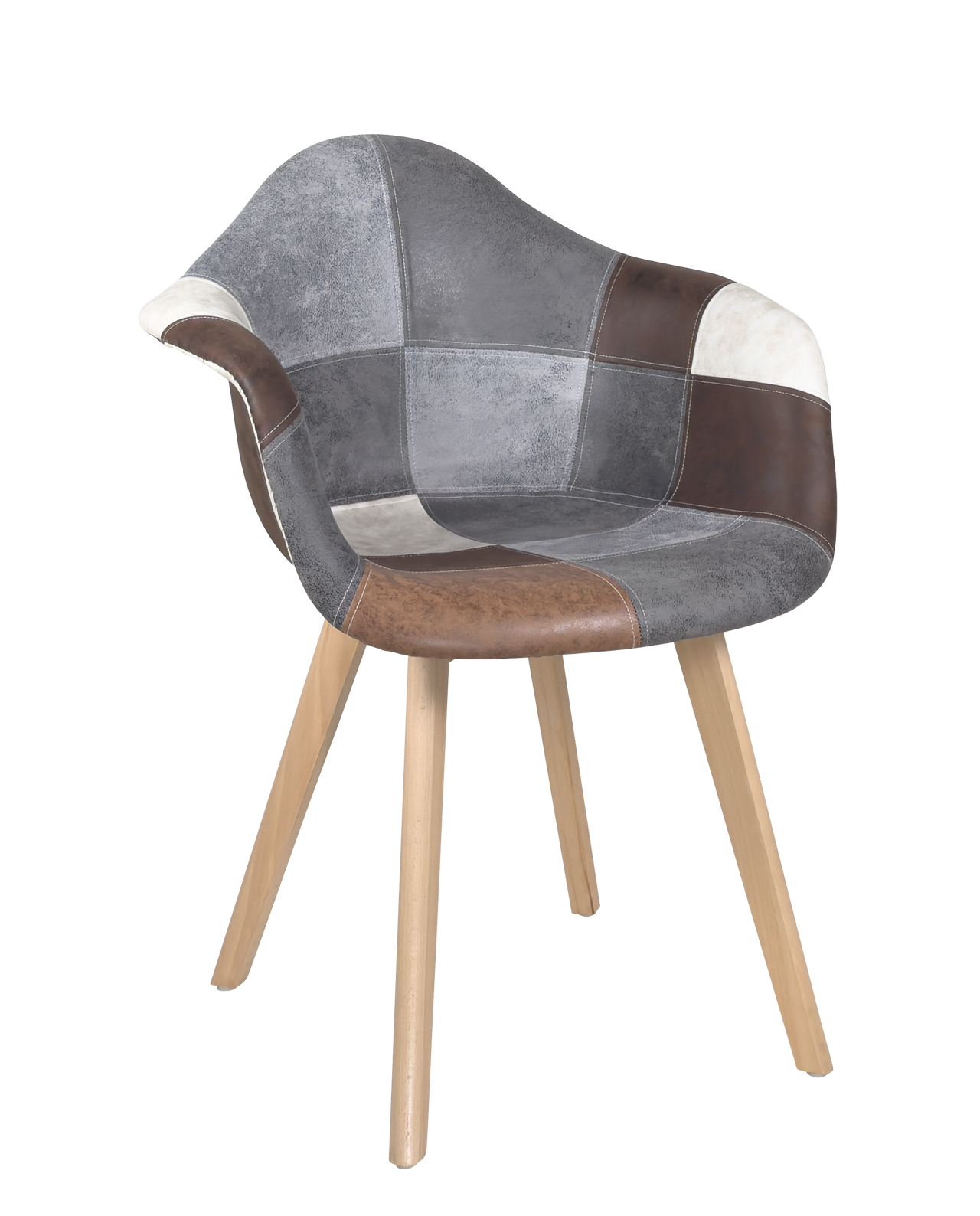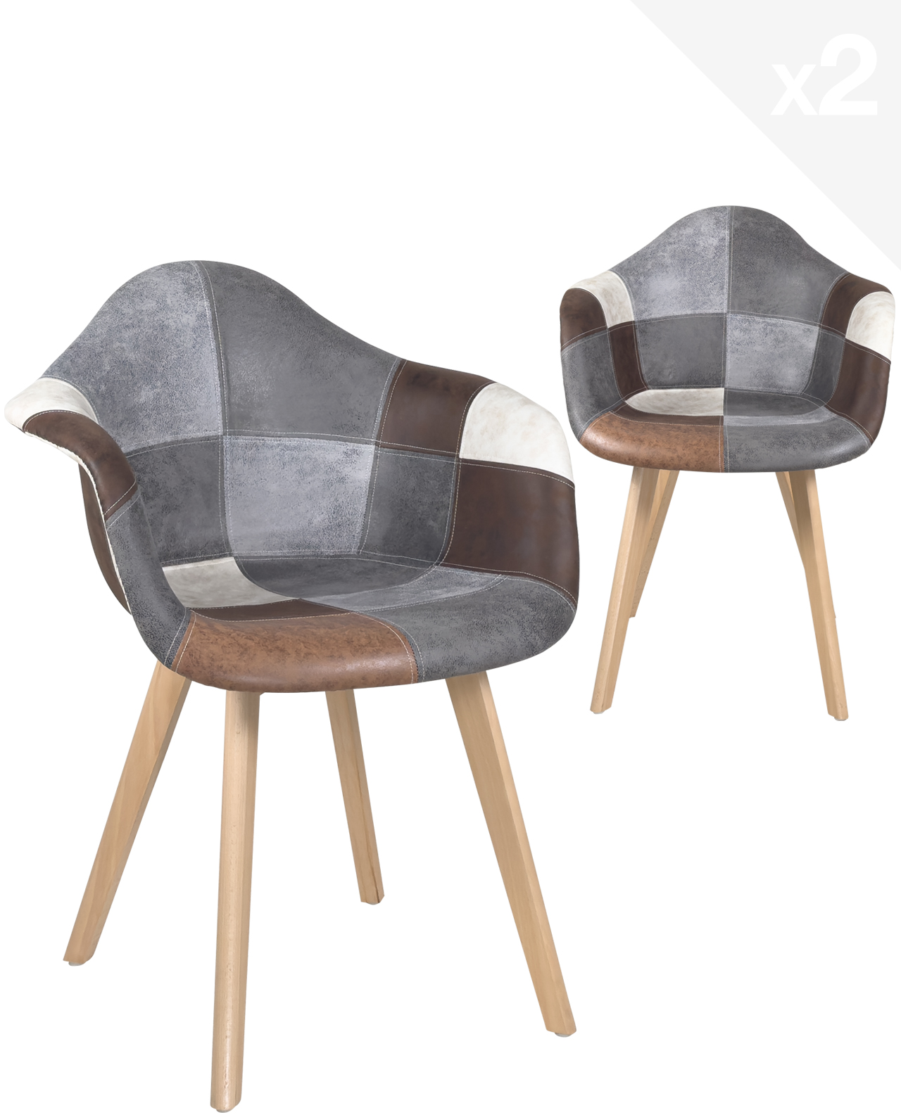 Lot 2 chaises scandinaves accoudoirs siège patchwork rembourré pieds bois hêtre clair NEDA (marron)