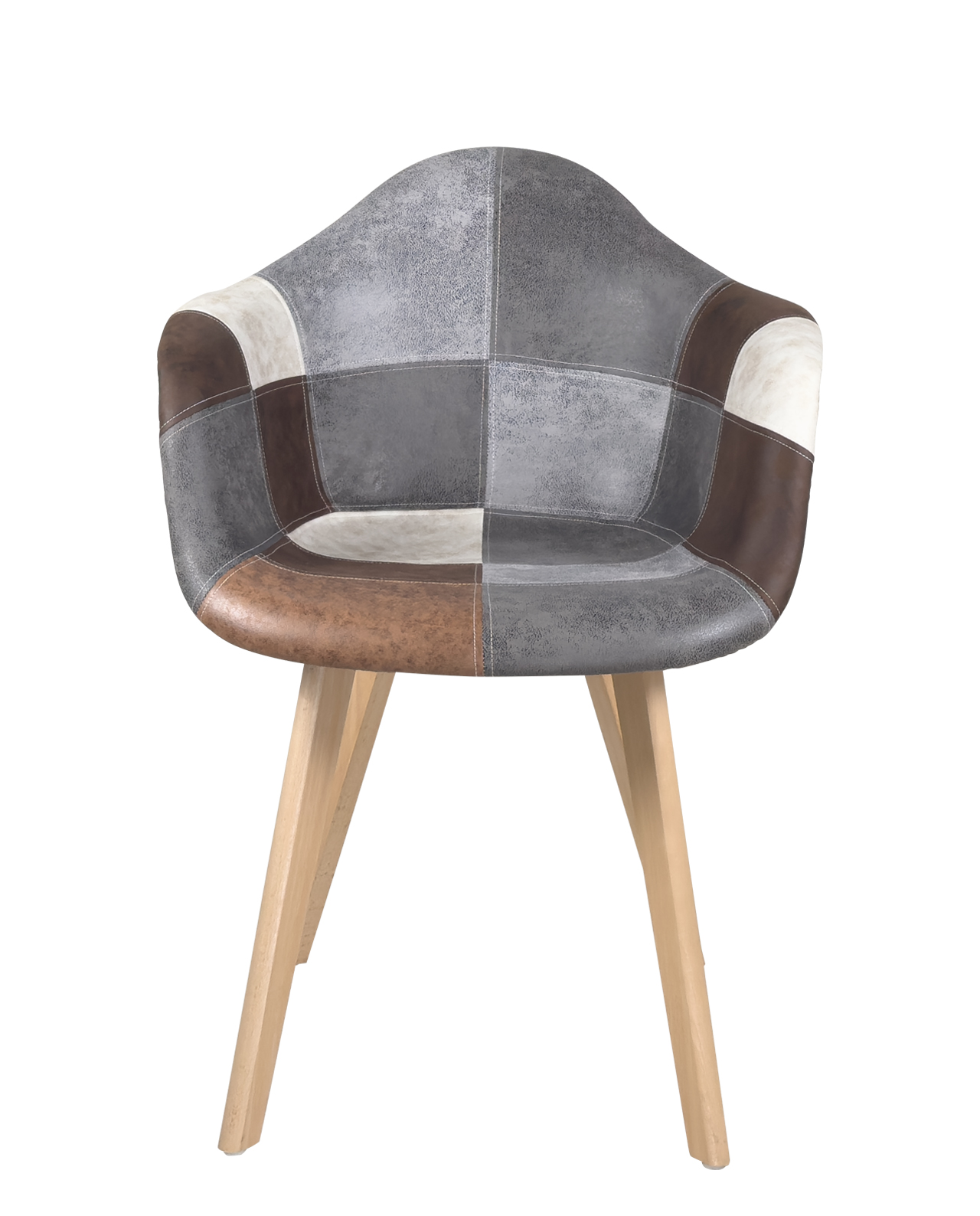 Lot de 2 chaises patchwork neda patchwork. Avec son look multicolore si original, c'est un petit fauteuil idéal pour la salle à manger, le salon ou comme chaise de visiteur, dans une salle d'attente, une chambre etc. Stylé et confortable avec son siège à accoudoirs rembourré habillé d'un patchwork très doux, au touché proche du daim ou du nubuck. Le piétement en bois de hêtre lui assure une touche nordique. Le design et l'assemblage du PU peuvent varier légèrement en fonction des séries. Matières: - revêtement en PU patchwork gris bleu- siège rembourré, structure en polypropylène- piètement en bois de hêtre verni teinte naturelle fiche technique :- hauteur totale : 82.5 cm- hauteur d'assise : 49 cm- assise : 36 ( intérieur ) (l) x 46 (p) cm- dossier : 39 (h) cm- pieds : 40 (l) x 48 (p) cm- dimensions hors tout : 69 x 49 x 82,5 cm- colisage : livré en 1 colis de 73 x 66 x 35 cm- nombre de pièces par carton : 2- poids brut : 12.60 kg- poids net : 5.3 kgmontage : - facile / une personne. A assembler suivant instructions jointes au colis entretien : - un simple chiffon humide pour poussière. Pas d'abrasif. - en cas de tâche, l'eau peut être légèrement savonneuse