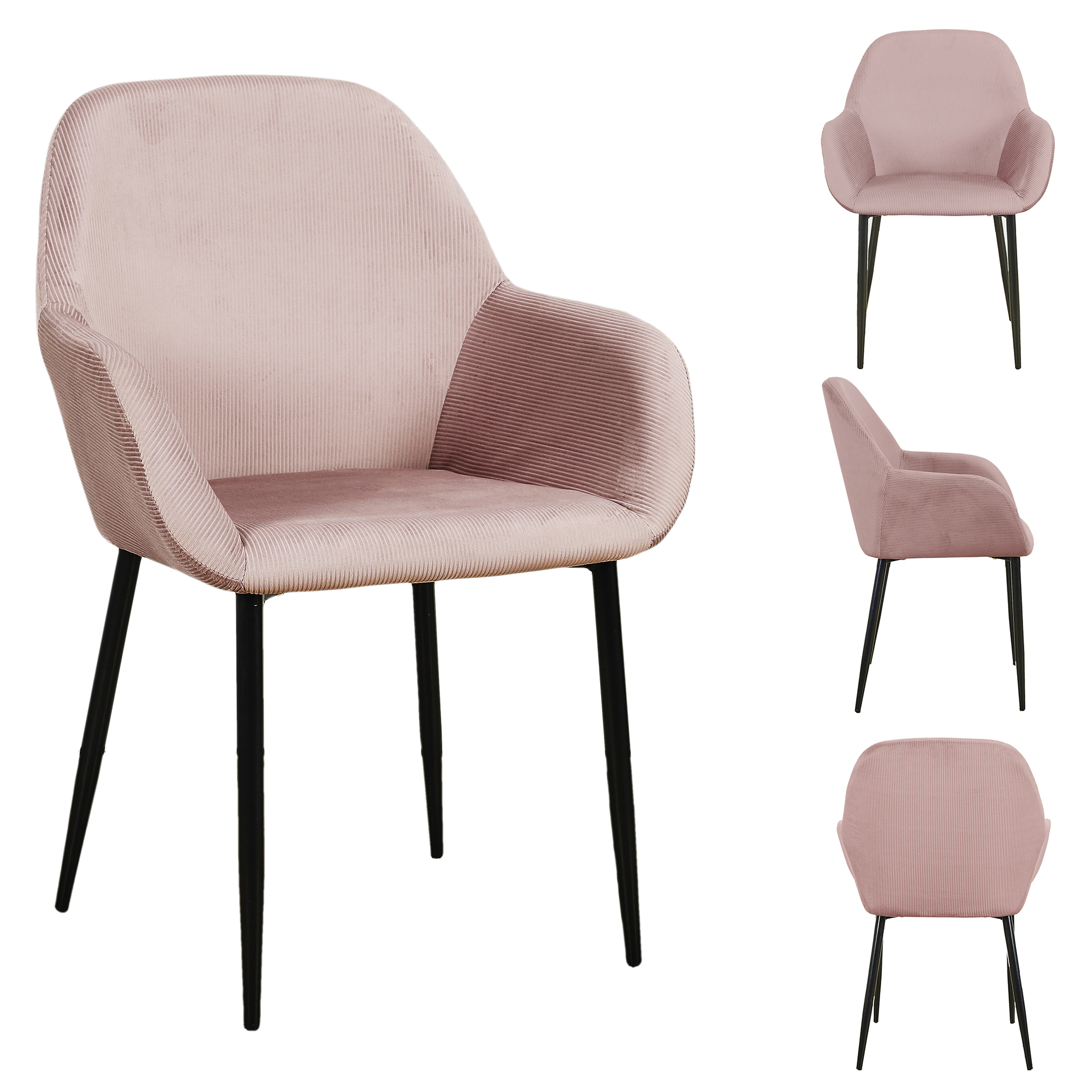 Fauteuil en velours côtelé rose poudré avec pieds métal noir. Ce fauteuil saura s'intégrer parfaitement dans votre intérieur. en y apportant une touche colorée ! A monter soi même. Dimensions : L55,7 x l59,2 x H85 cm. Hauteur assise : 45,5 cm. Matière : Mousse PU et métal. Poids : 5,9 kg.