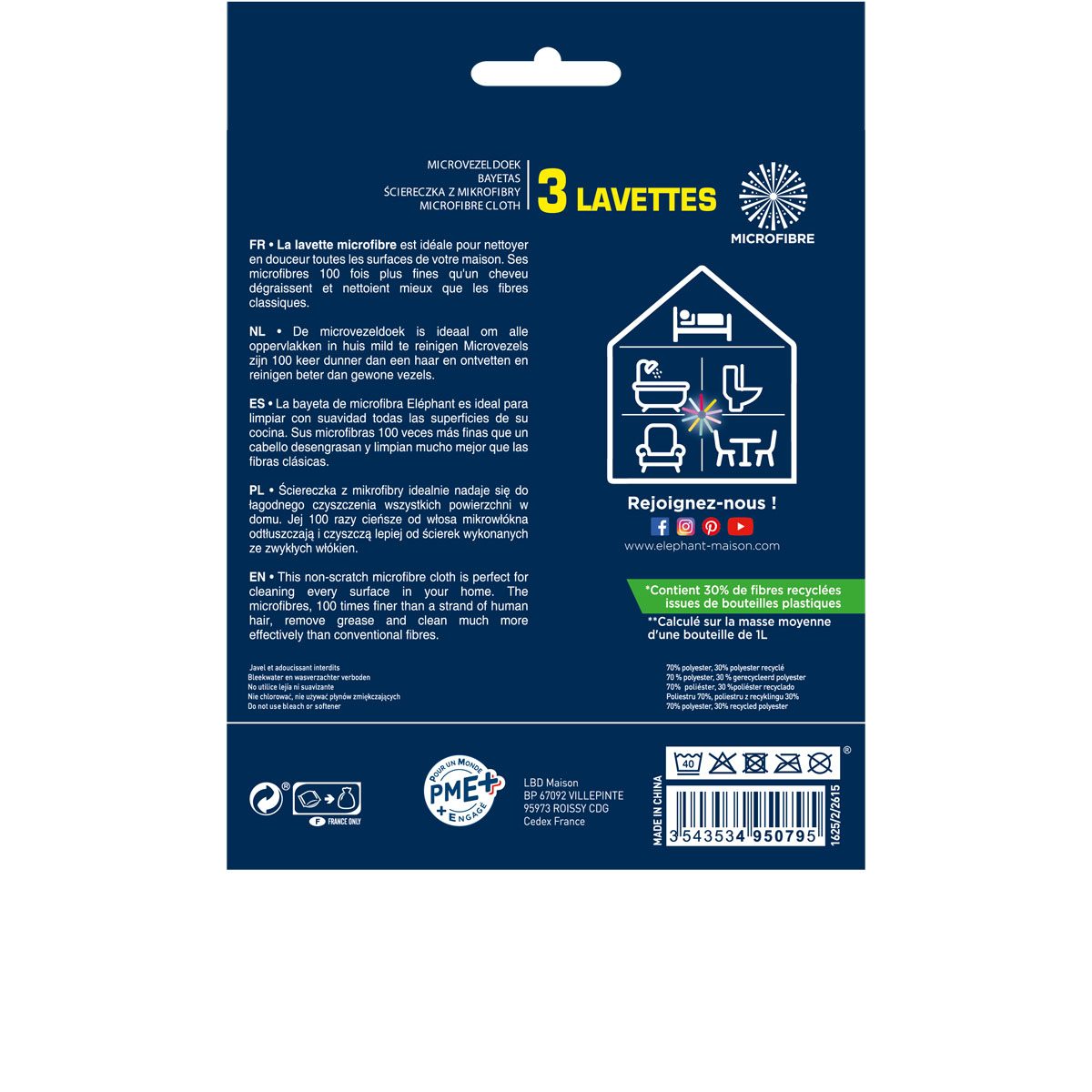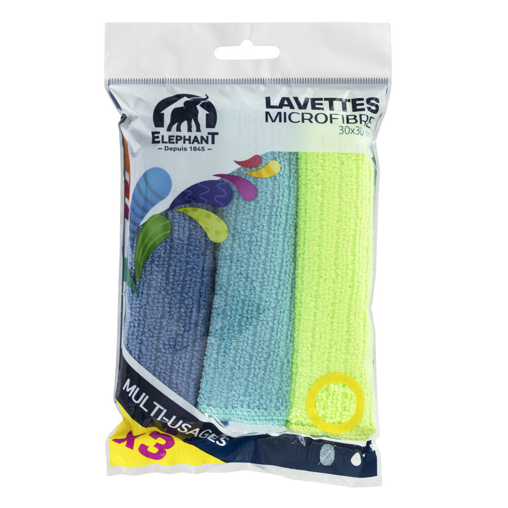 | Libellé | Lot 3 lavettes microfibre multi-usages - ELEPHANT |