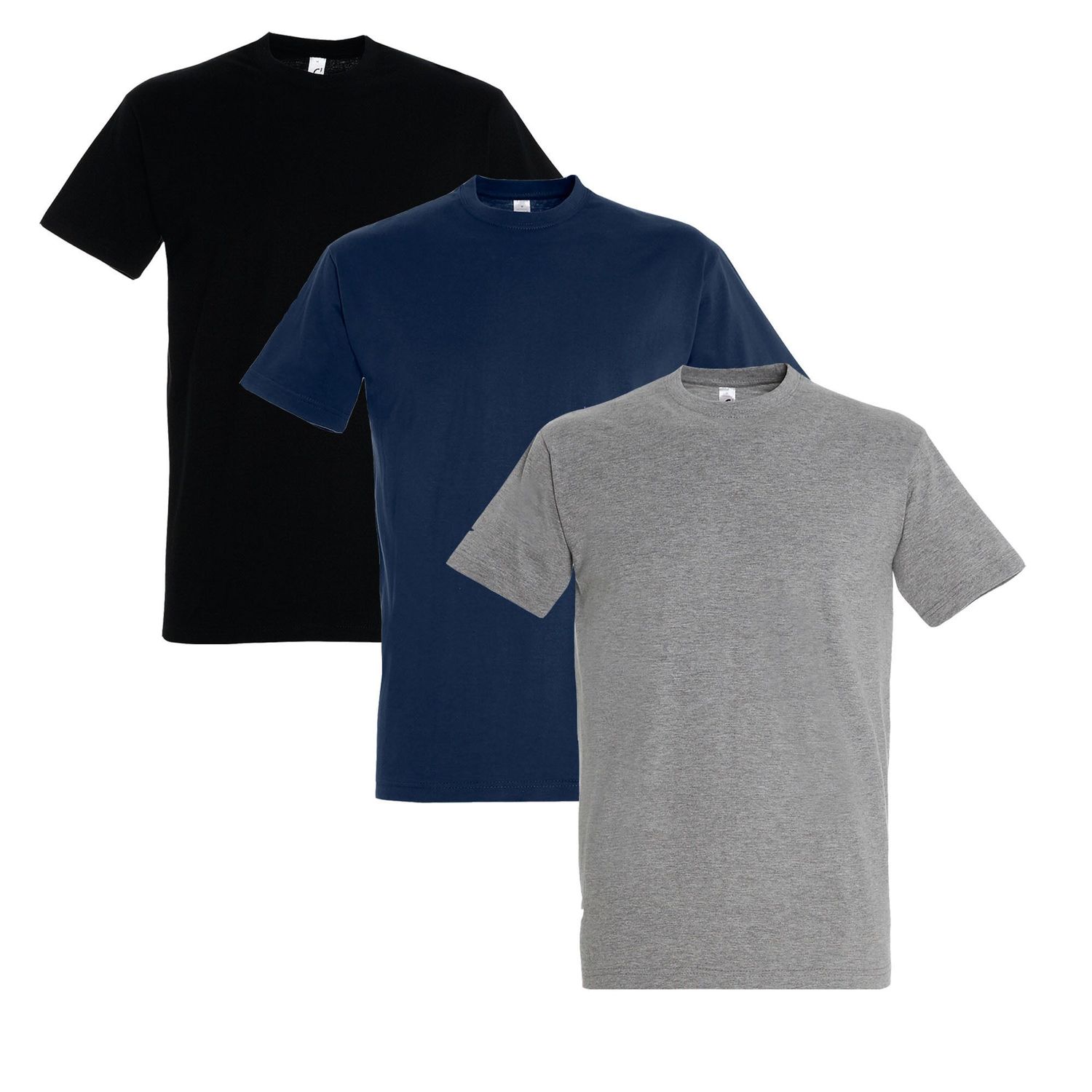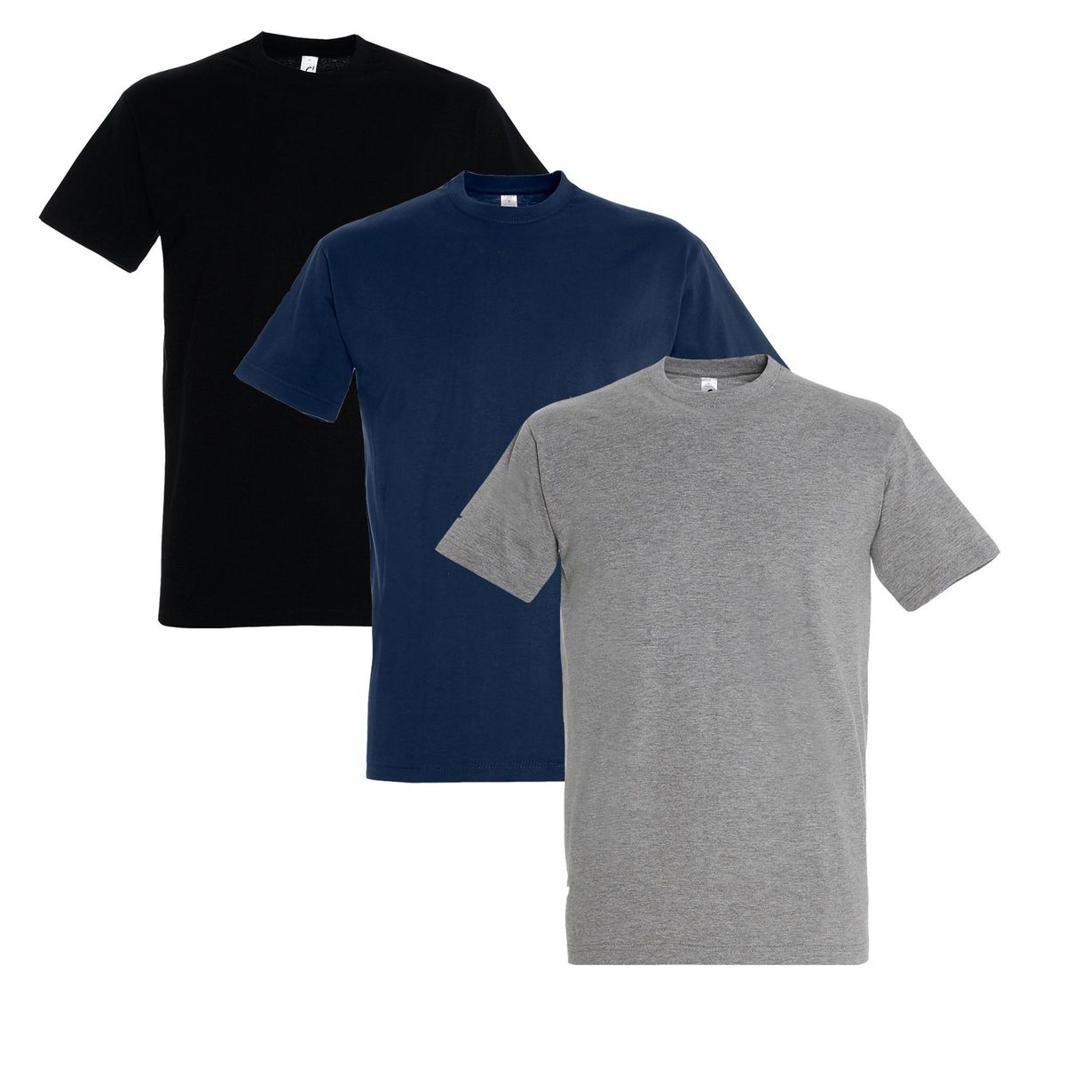 - lot composé de : 1 t-shirt noir, 1 t-shirt bleu marine, 1 t-shirt gris chiné
