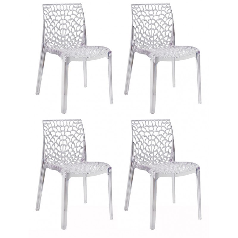 Lot 4 chaises ajourées empilables Transparentes - GRUYER